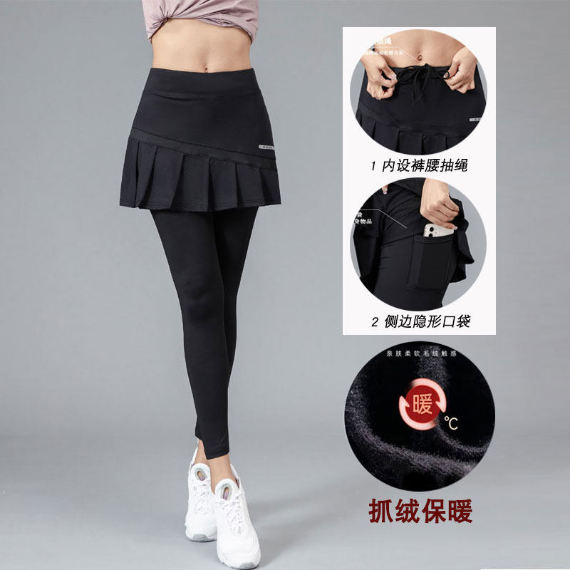 裙一体裙裤 运动裤 裙女假两件秋冬薄绒羽毛球网球瑜伽健身跑步长裤