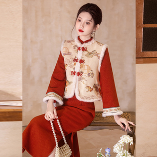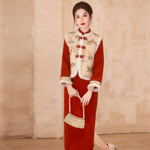 马甲连衣裙绝美改良旗袍新年战袍2025冬季 国风套装 女装 新中式