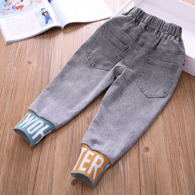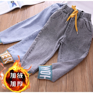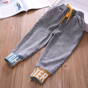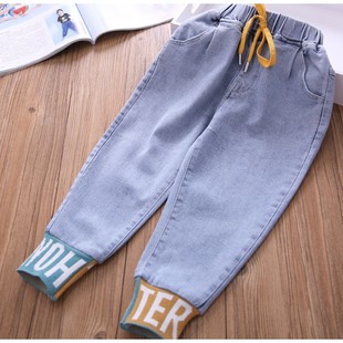 新款 儿童宽松时髦休闲裤 中小童女童牛仔裤 韩版 潮 字母小脚裤 春秋装