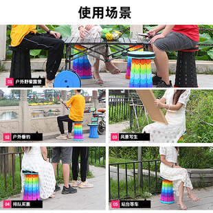 网红收缩折叠凳可调节伸缩便携式 户外旅行钓鱼椅子家用塑料小凳子
