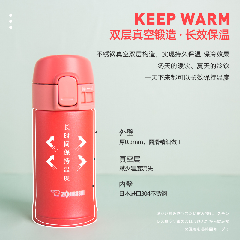 日本象印迷你保温杯女生高颜值便携小巧儿童口袋杯水杯杯子 200ml