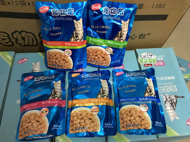 零食100g 5种口味猫咪猫湿粮猫咪罐头 24包 包邮 现货宠物乐开心包
