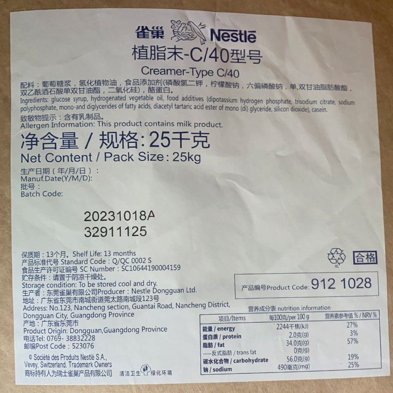 雀巢三花植脂末C40奶精粉咖啡奶茶伴侣0反奶茶连锁专用丝滑粉