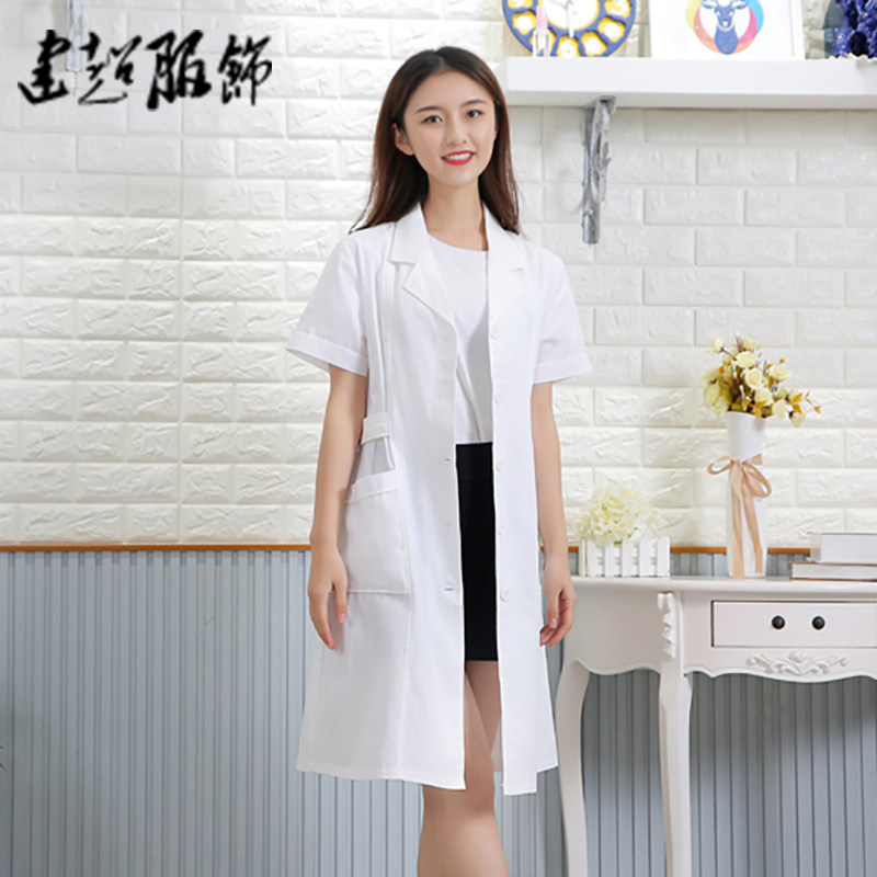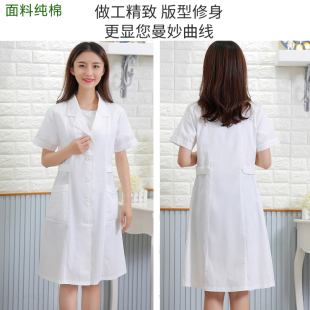纯棉美容工作服大褂长款 半袖 白色收腰护士服夏季 建超服饰全棉短袖