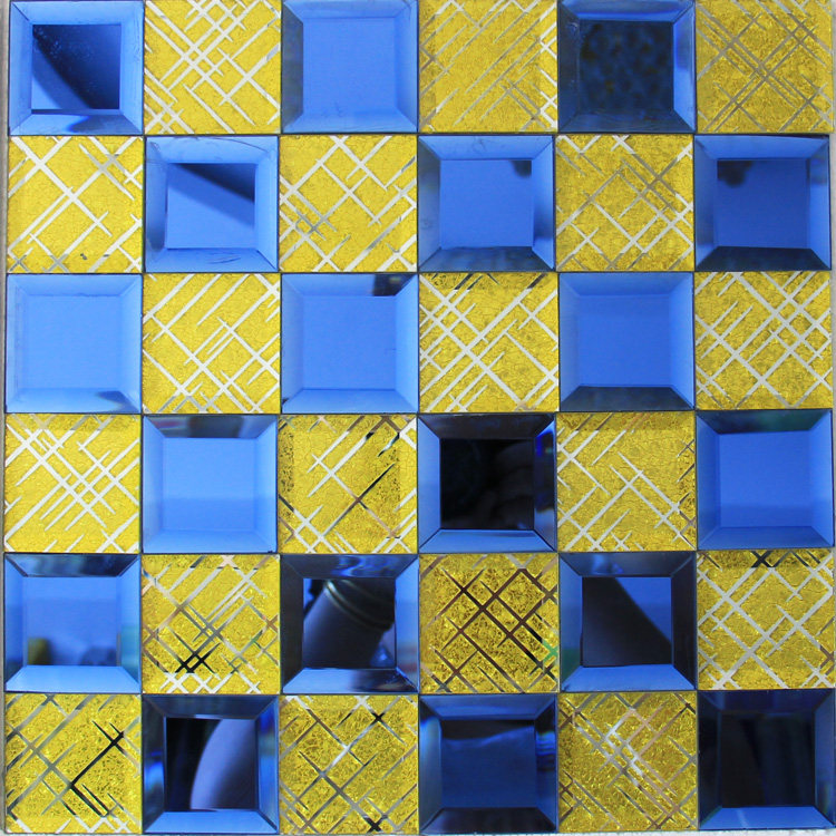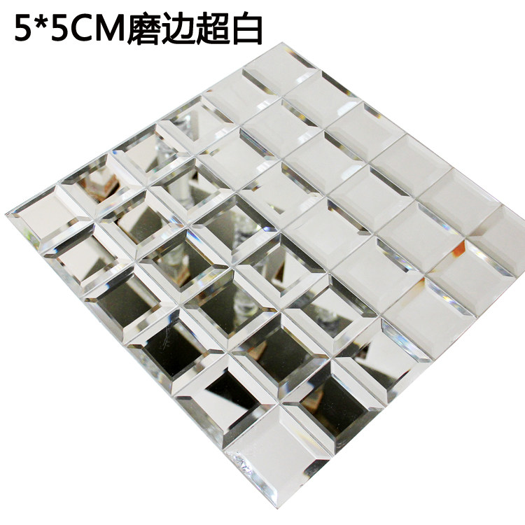 5cm密拼磨边水晶玻璃马赛克镜面瓷砖酒店KTV吧台背景墙贴背胶自粘