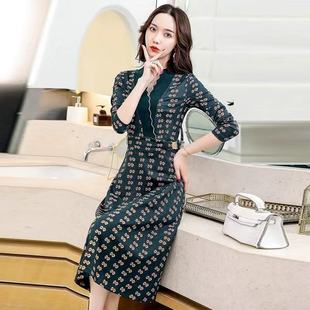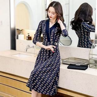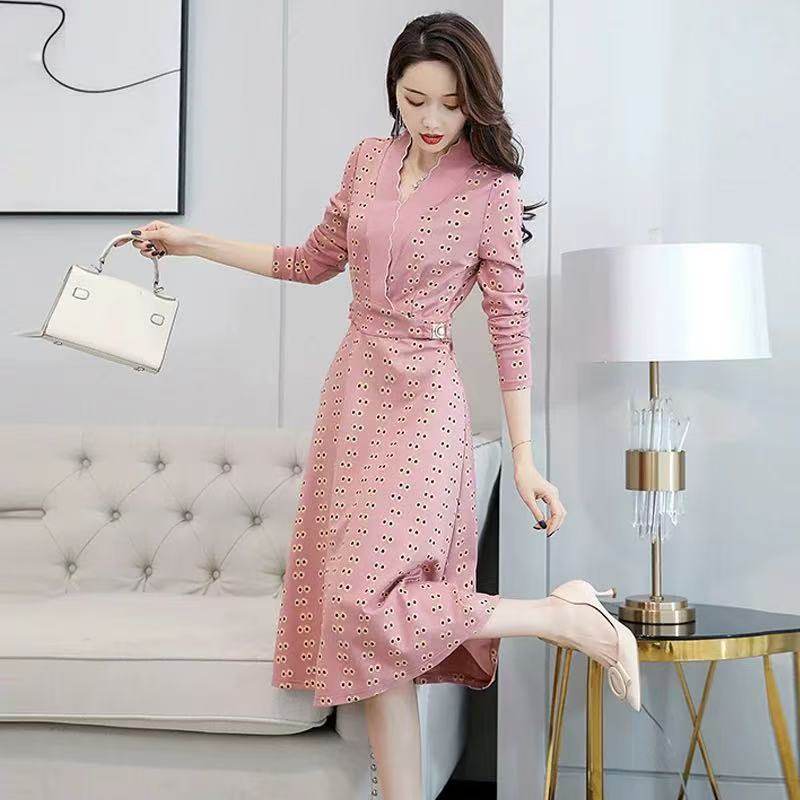 时尚 6965 清仓 V领连衣裙 中长款 修身 秋季 女装 大码 断码 妃蝶轩