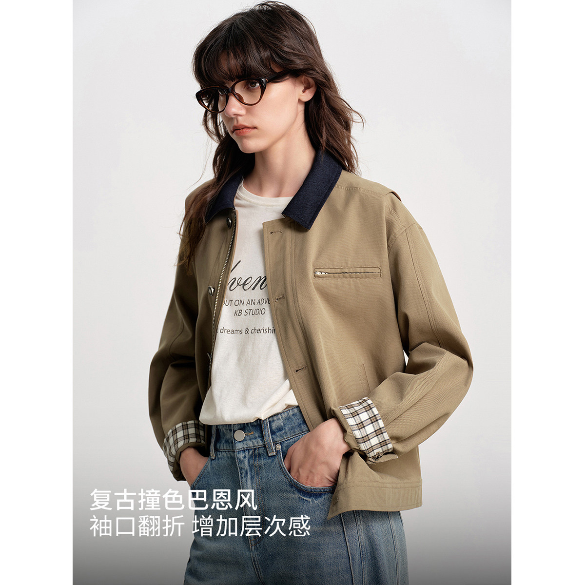 卡其色气质风衣上衣 新款 KBNE巴恩风休闲短款 外套女小个子2026春季