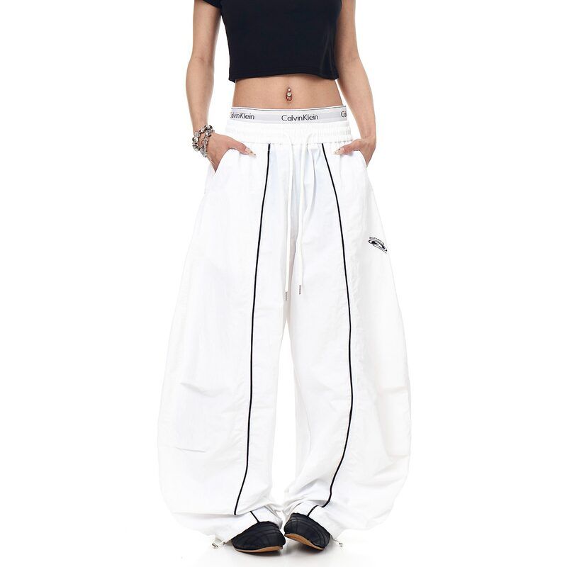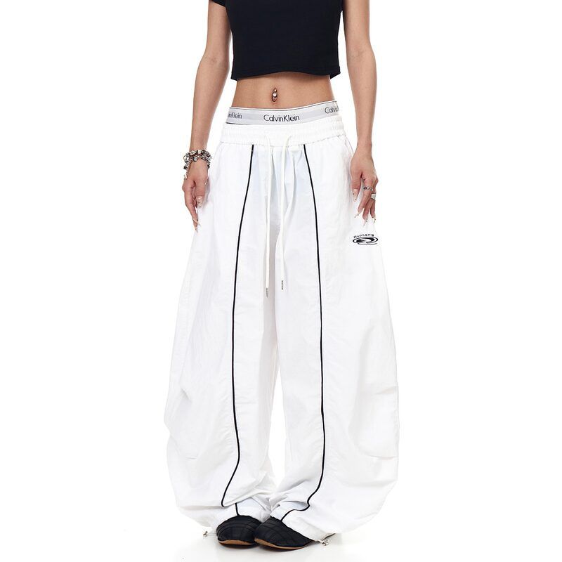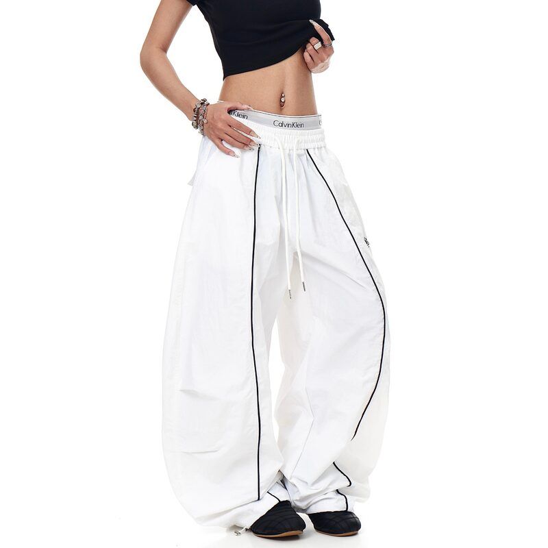 工装 阔腿裤 美式 欧美伞兵运动复古宽松褶皱条纹跨境新款 批发2025裤
