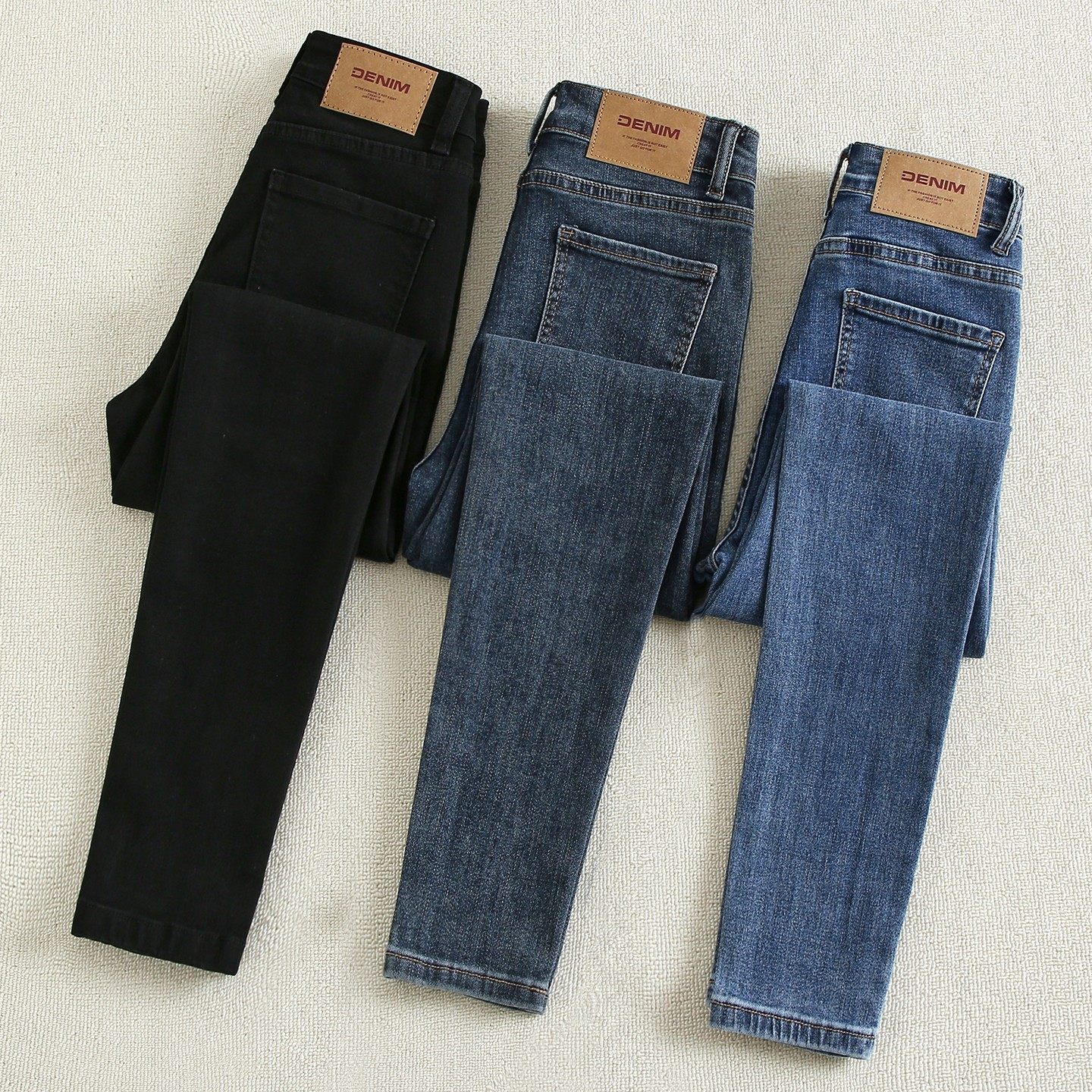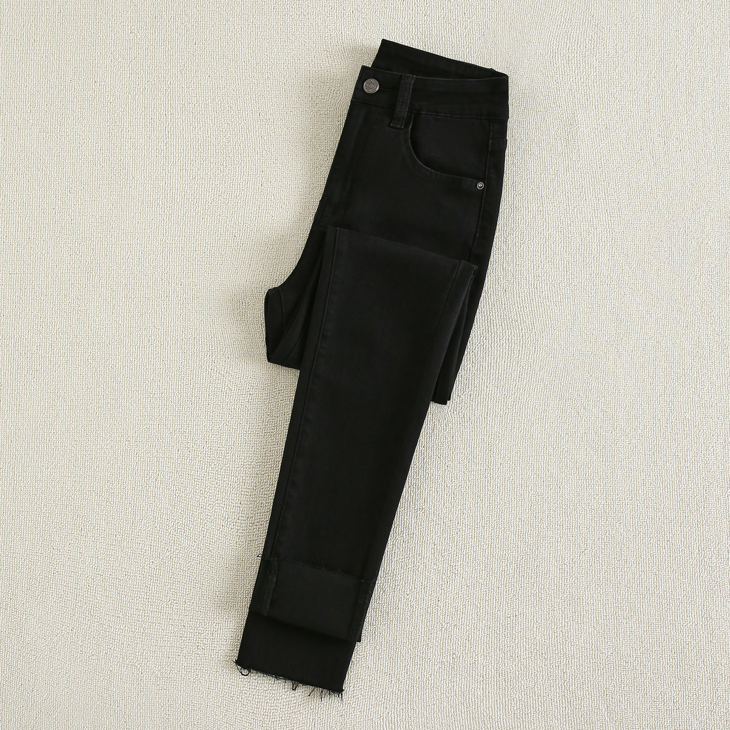 显瘦黑色铅笔裤 修身 子 女2025秋季 拉夏贝尔加绒高腰紧身小脚牛仔裤