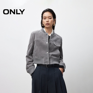 皮衣外套女 饰盖袋利落正肩短款 ONLY春季 棒球风胸前装