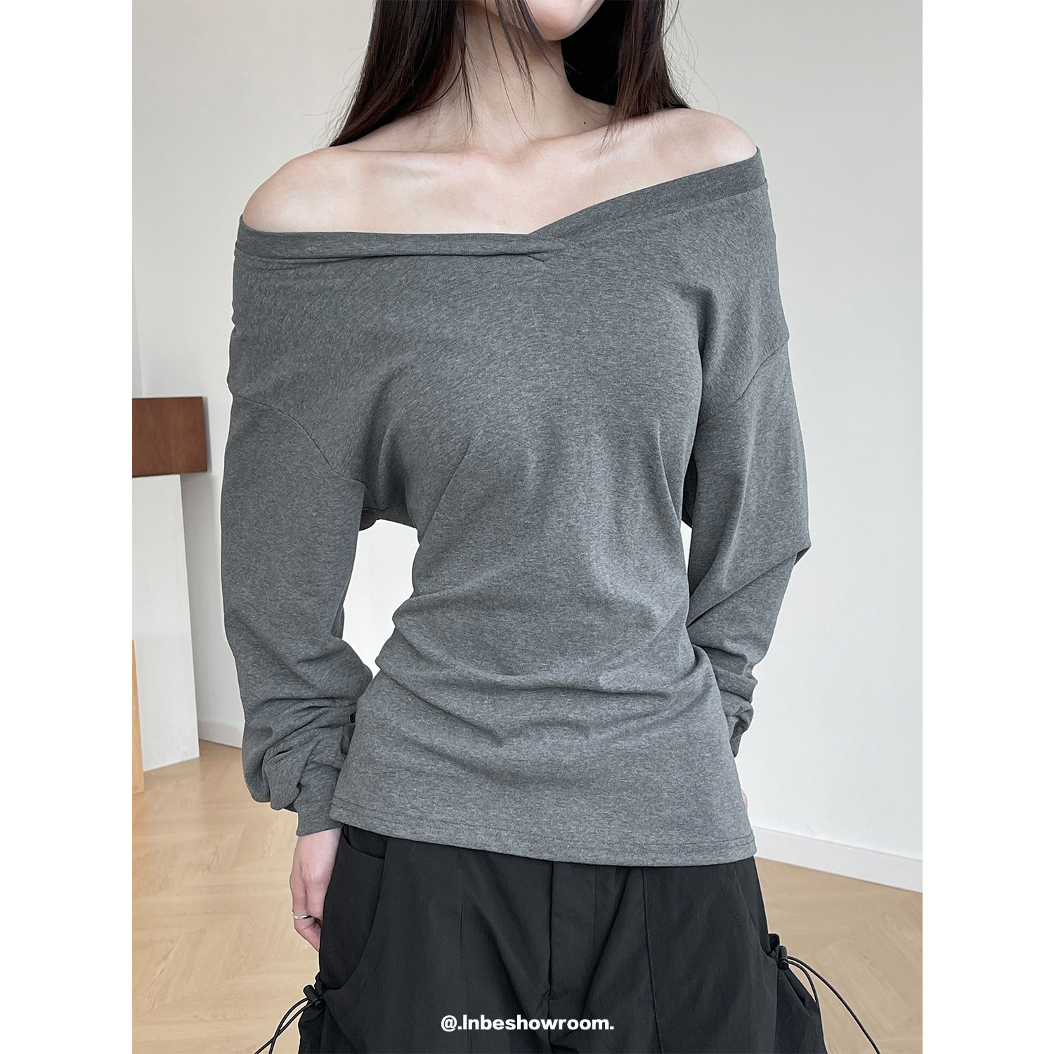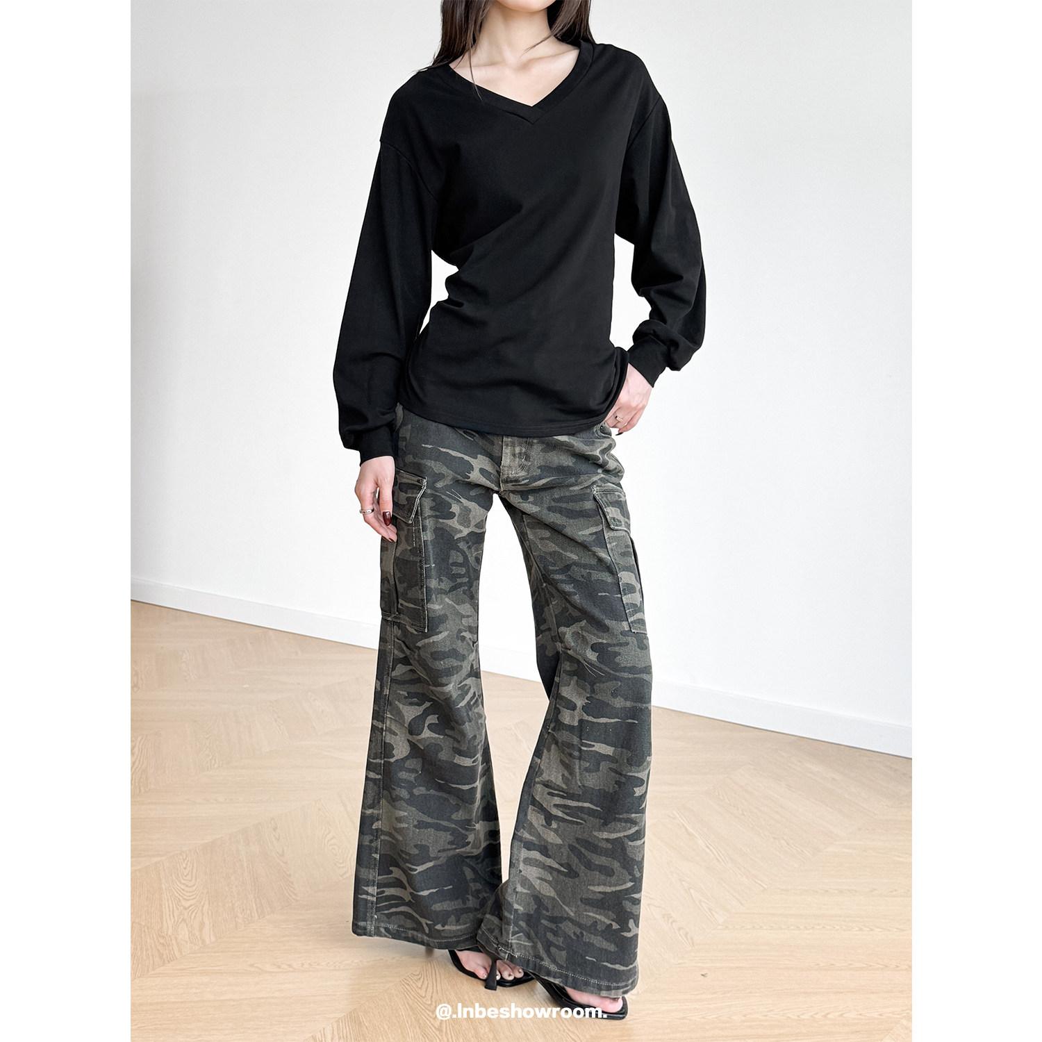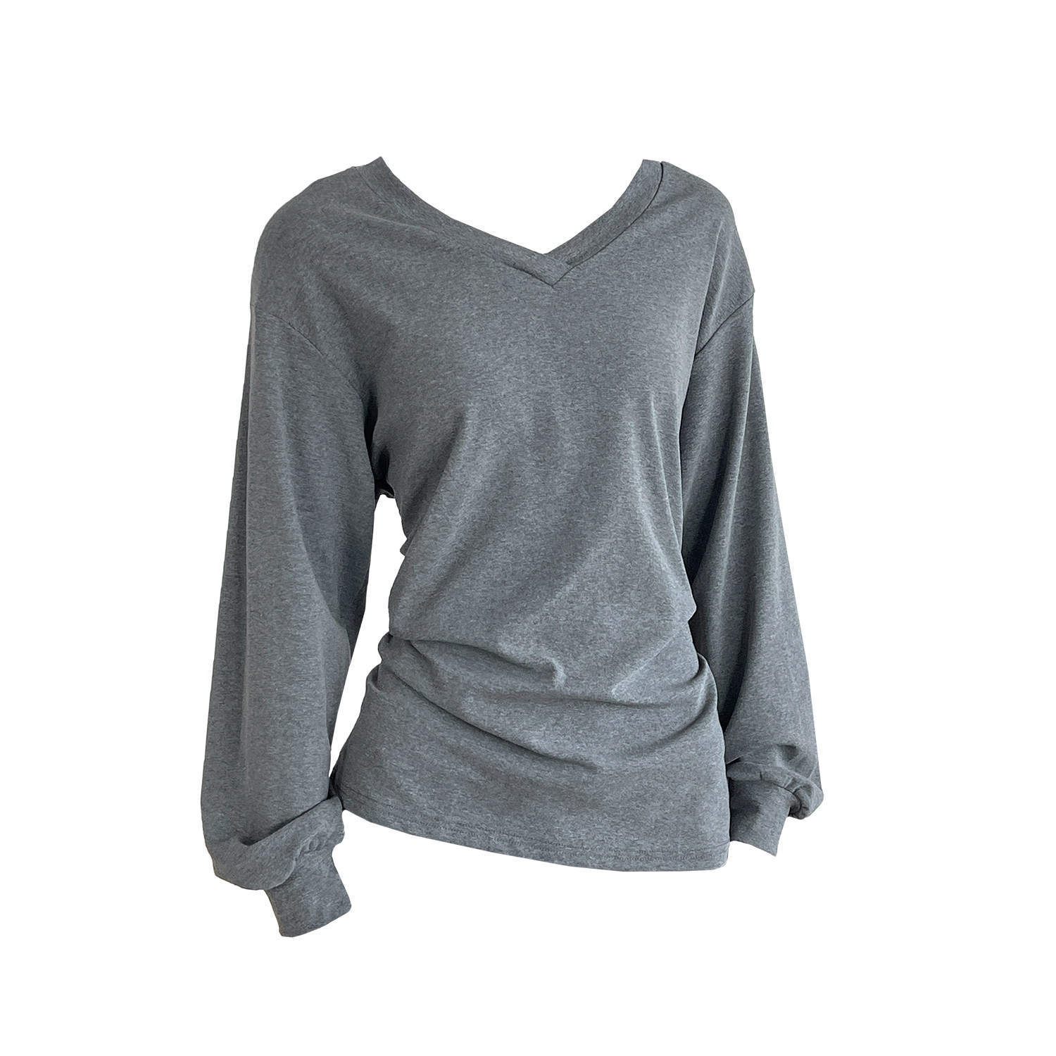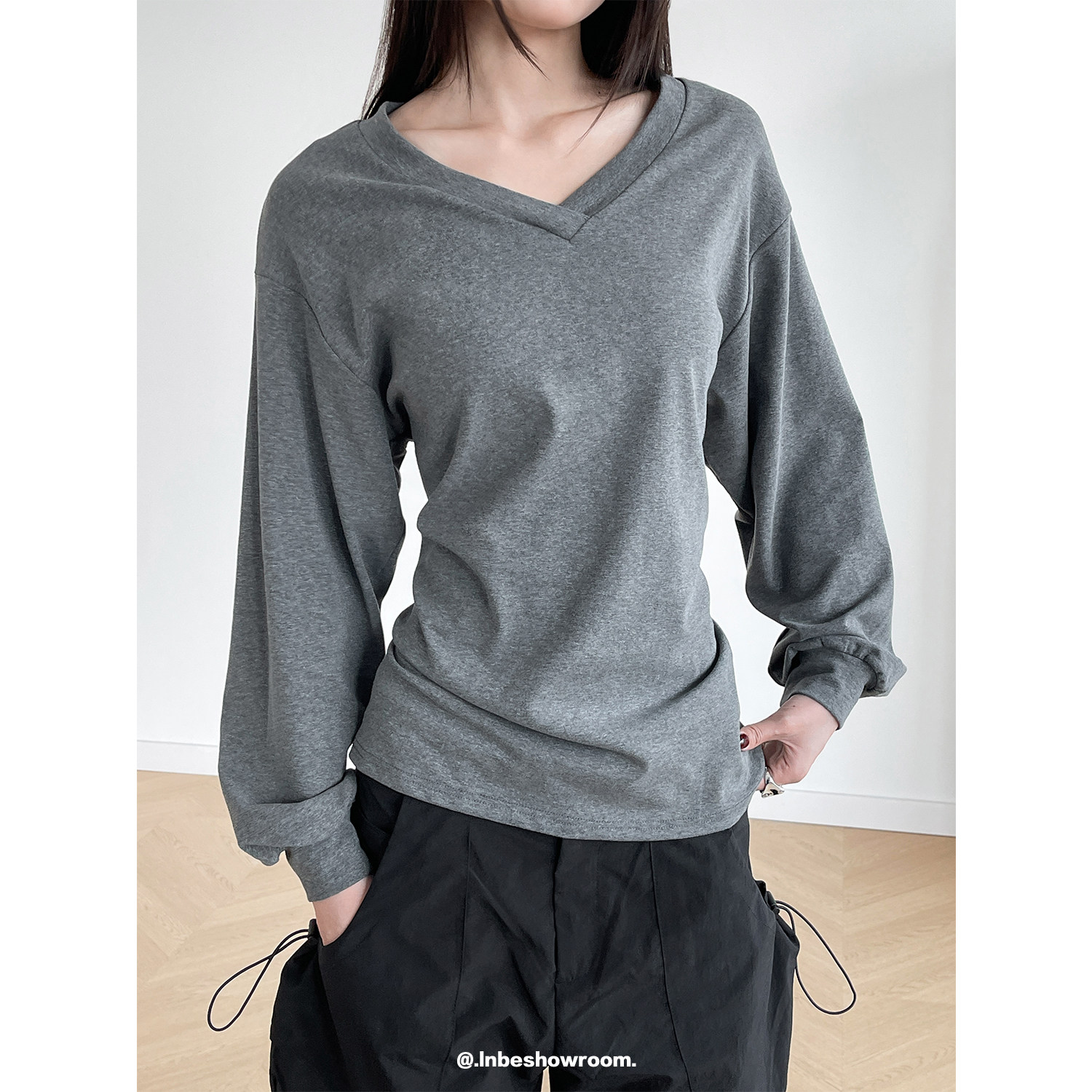 上衣 显瘦长袖 Inbeshowroom美式 后绑带收腰V领卫衣女设计感修身
