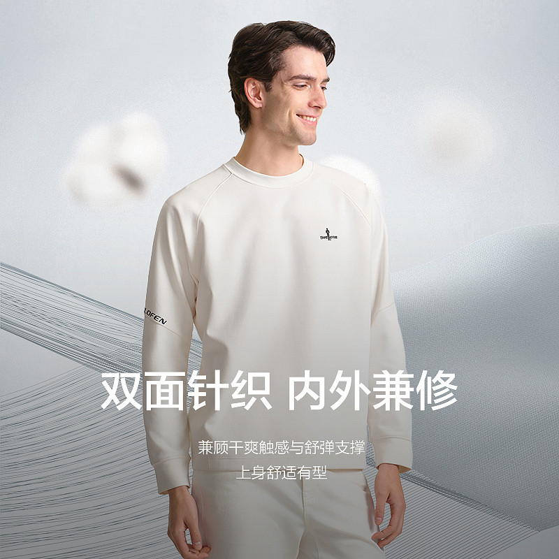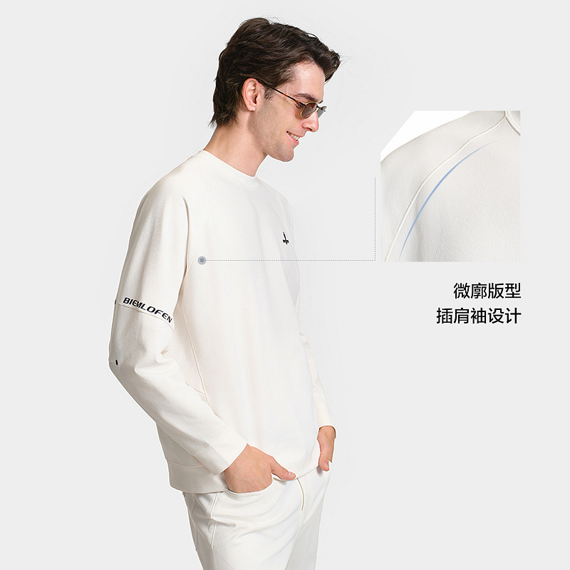 男休闲宽松圆领长袖 新款 比音勒芬2025秋季 T恤 双面针织肌理感