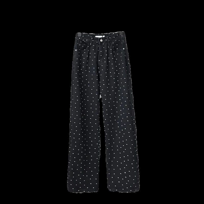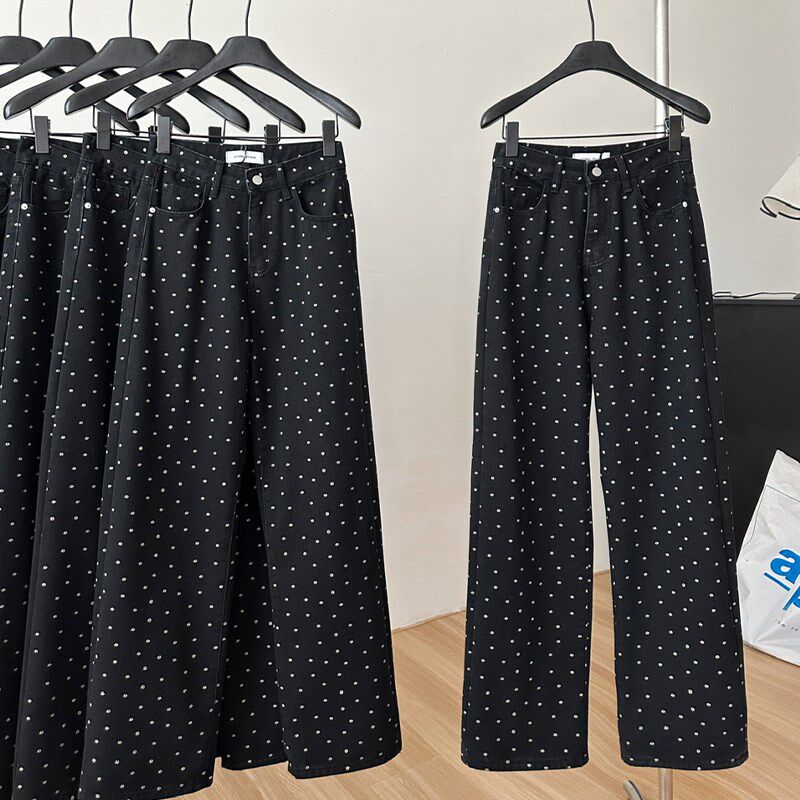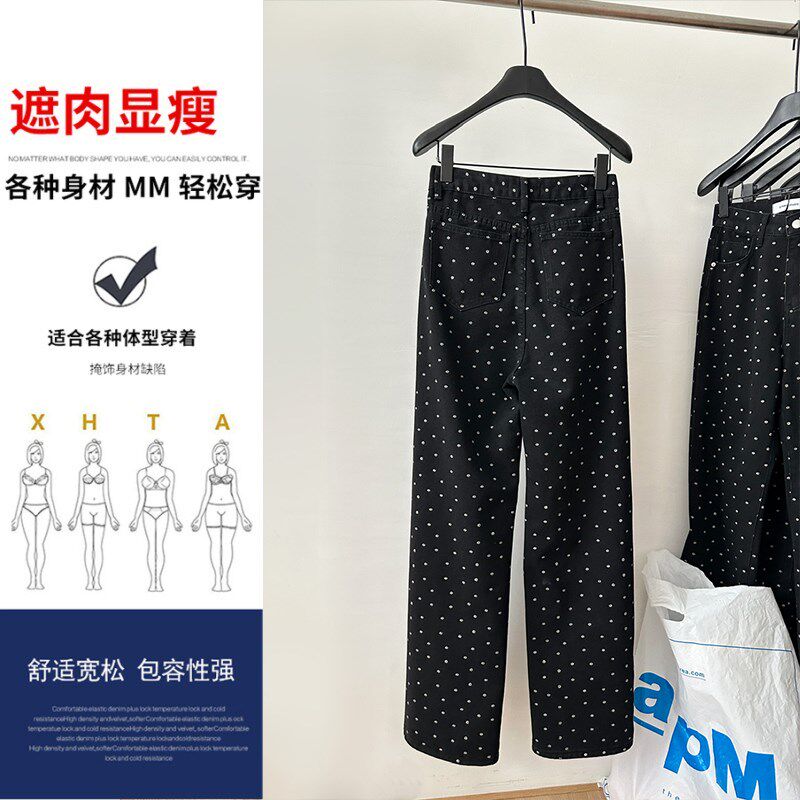 直筒长裤 女春夏145百搭窄版 子150黑色九分波点牛仔阔腿裤 小个子裤