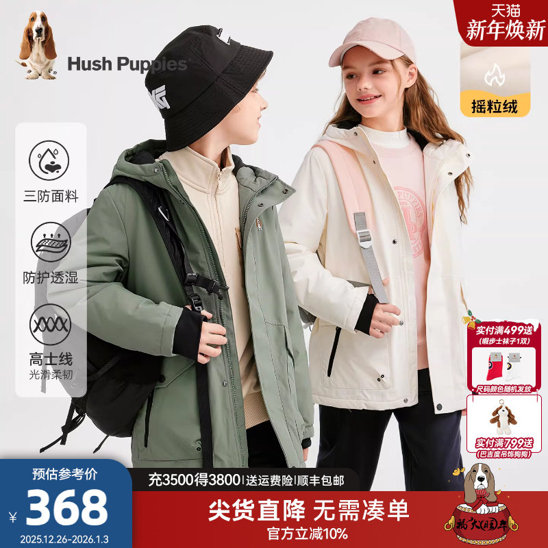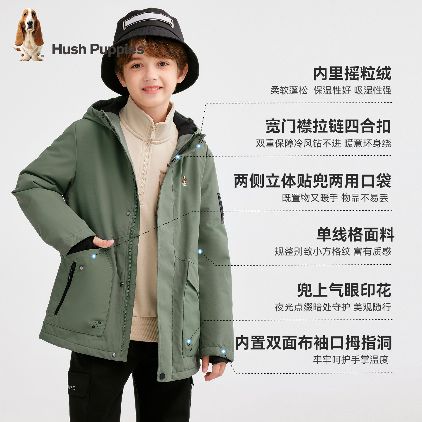 暇步士童装 男大童三防外套连帽女童加绒厚外套 儿童风衣25秋冬新品