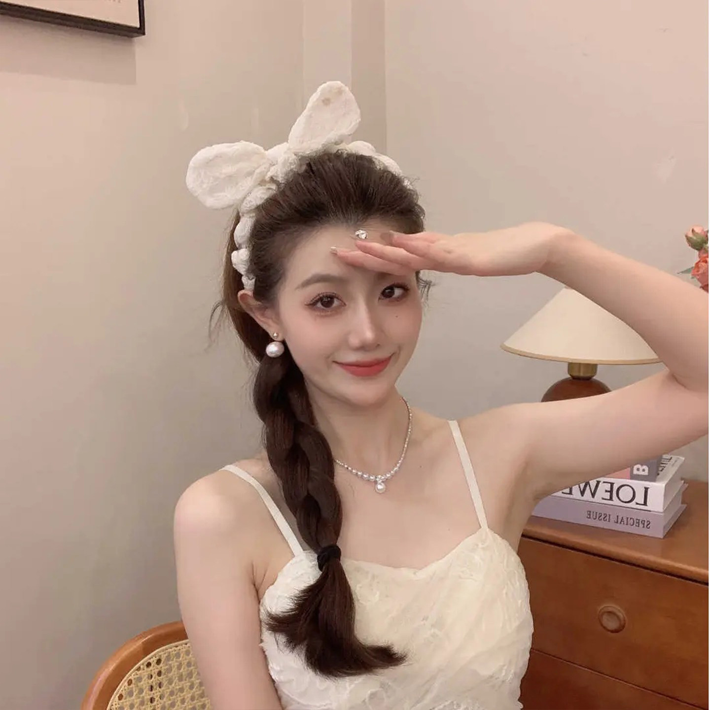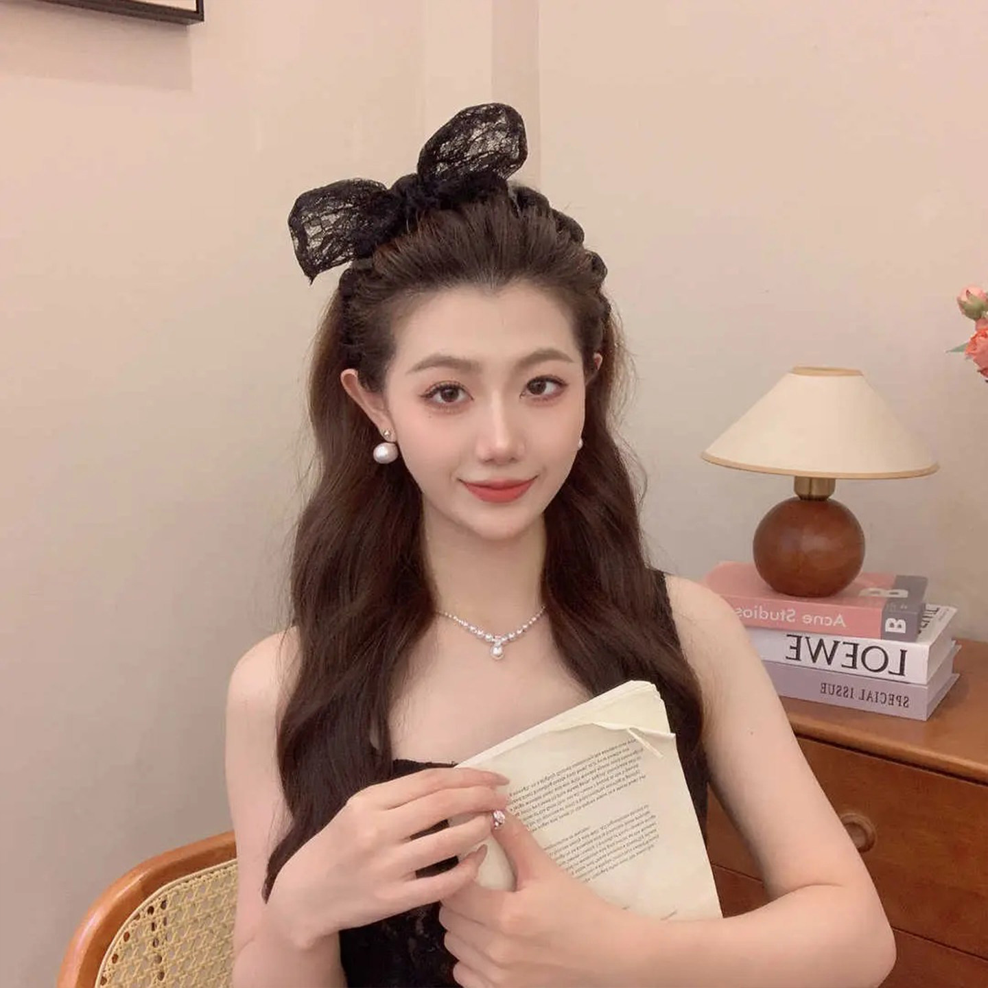 显脸小蓬松高颅顶兔耳朵蕾丝蝴蝶结发箍女款 头箍发卡头饰 2025新款