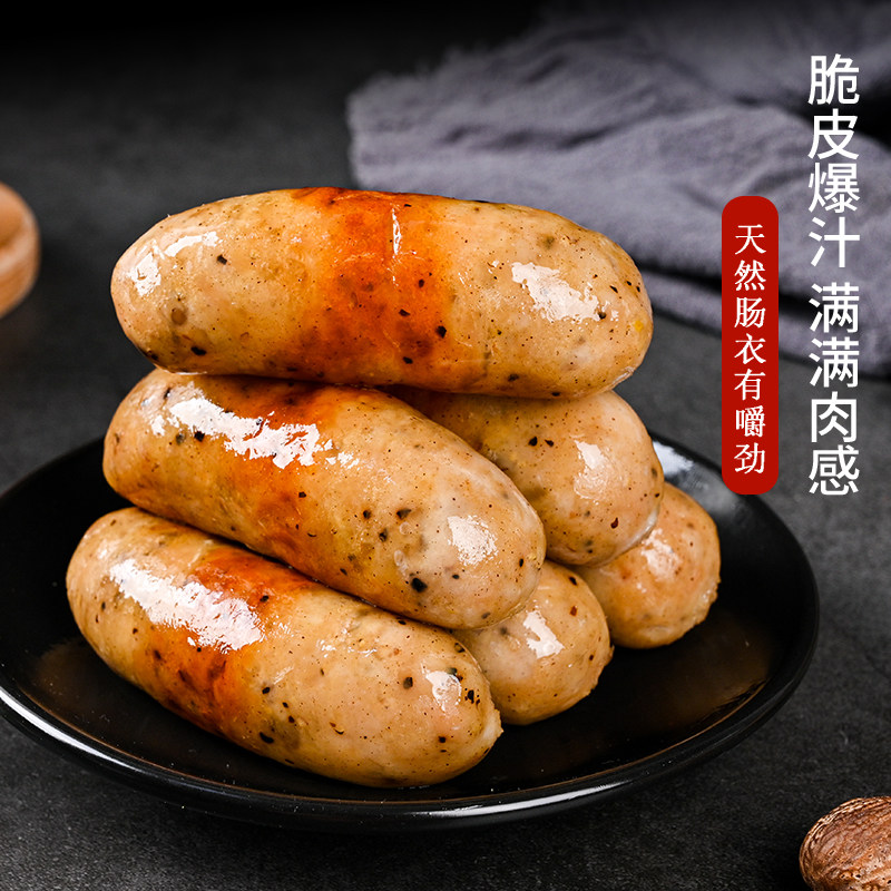 火山石烤肠脆皮烤肠50G单根大克重肉肠原味黑胡椒地道肠整箱批发