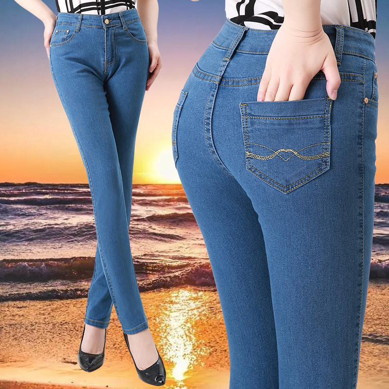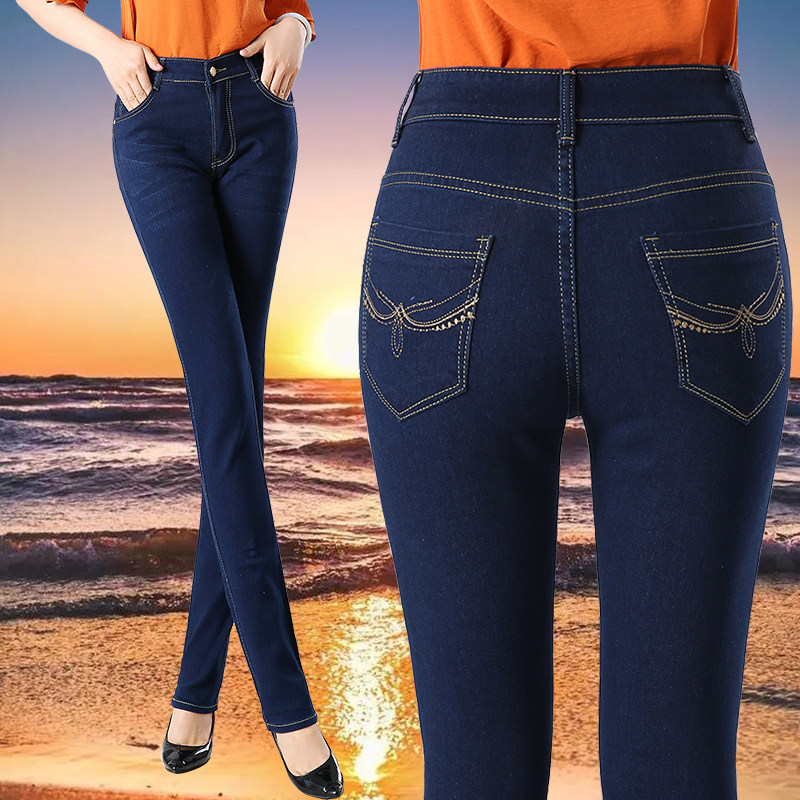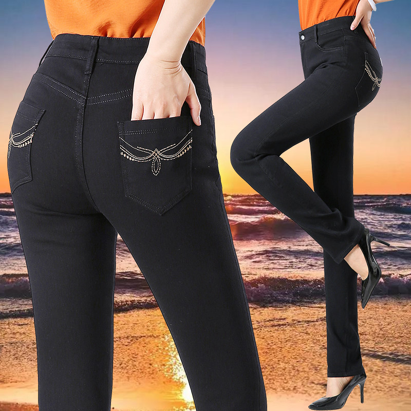 牛仔软面料上身舒适中年妈妈休闲裤 运动休闲款 子 高腰牛仔女裤 秋季