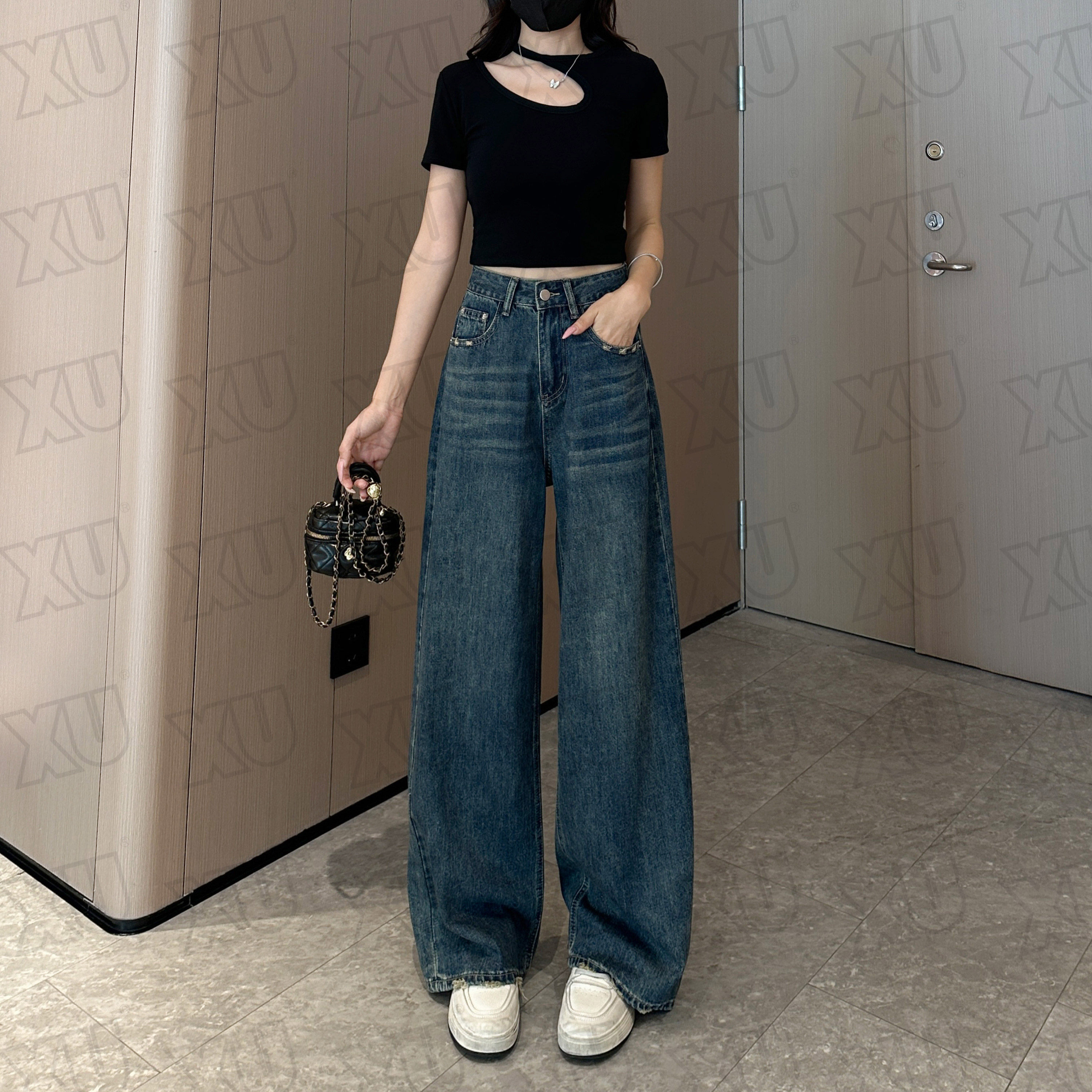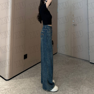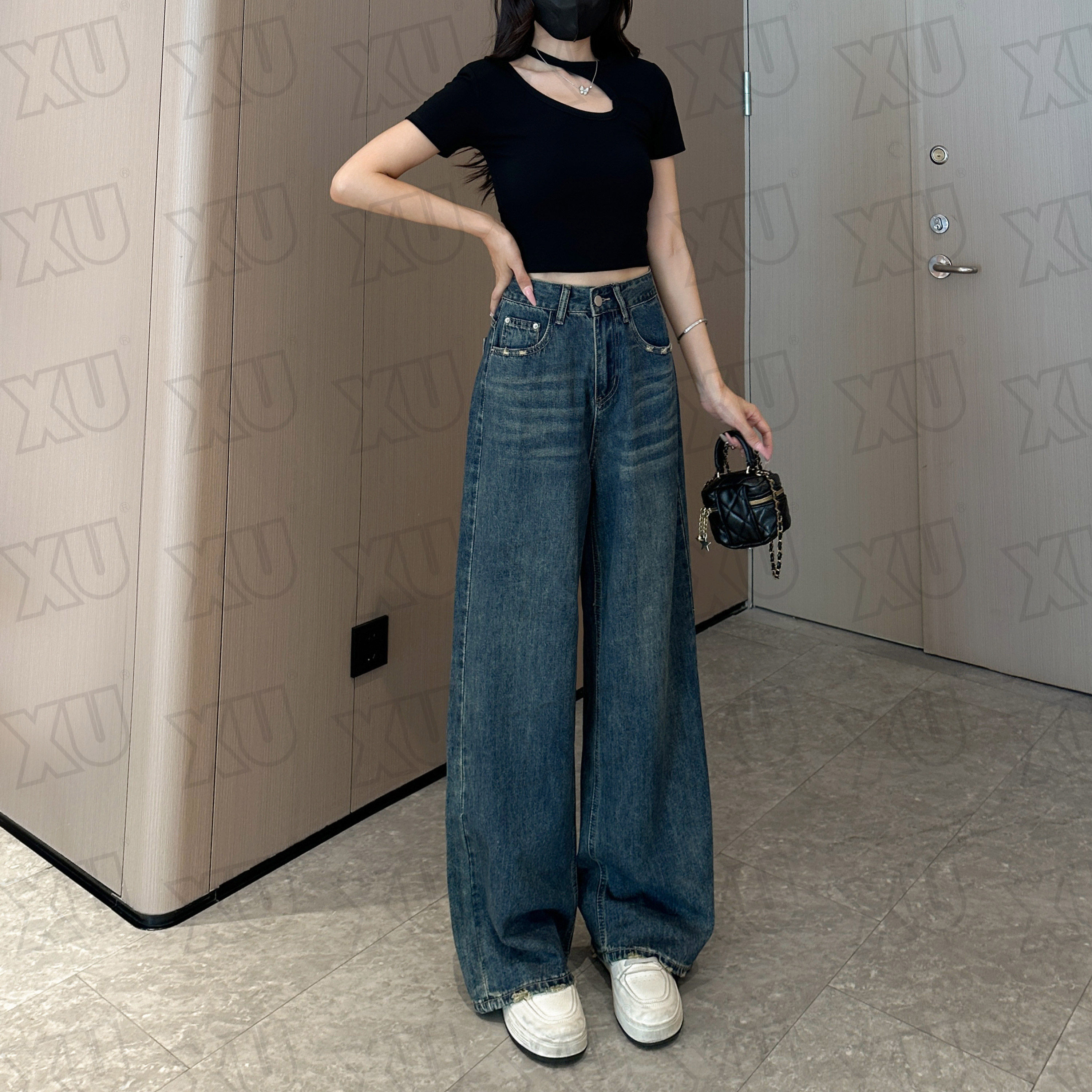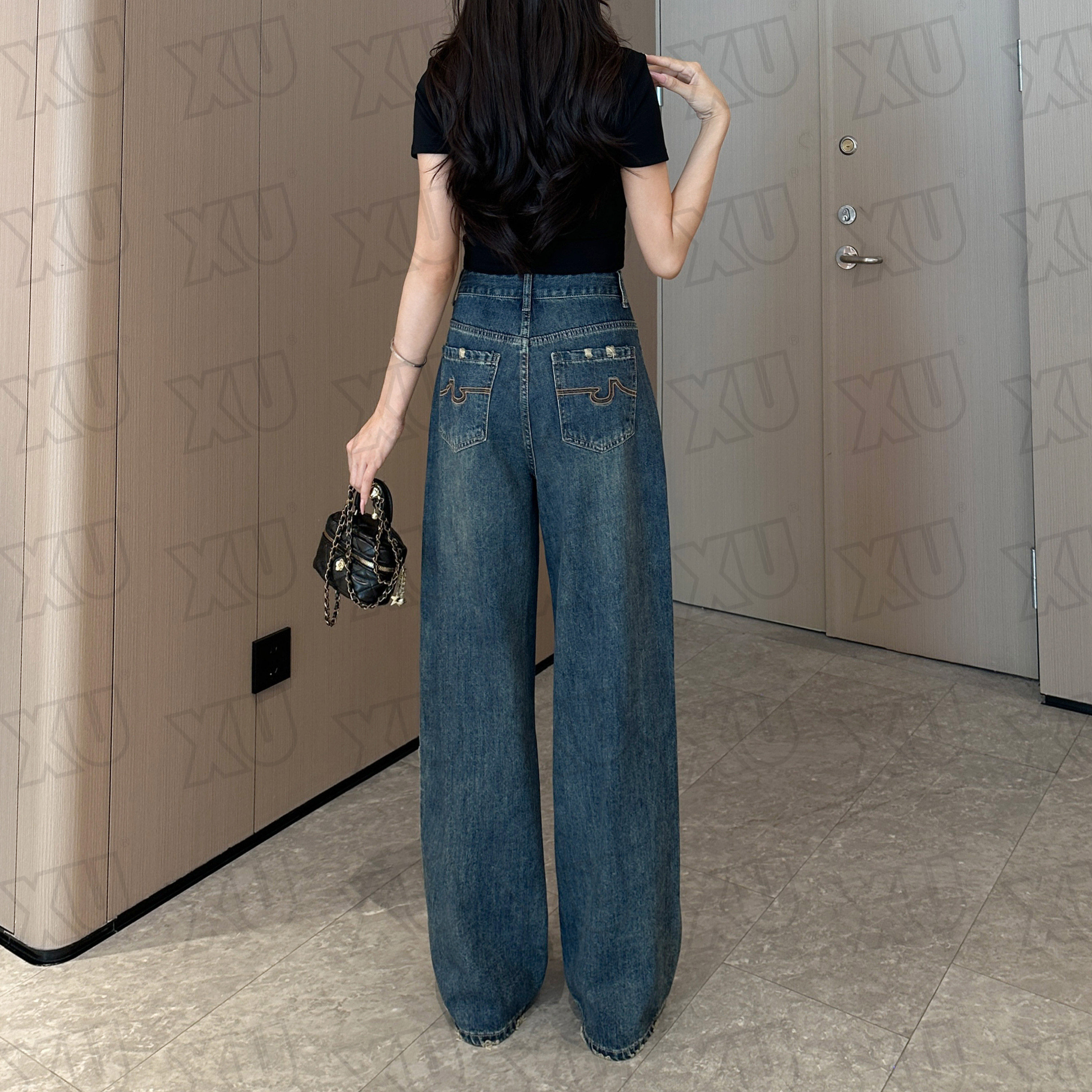 7598复古高腰阔腿牛仔裤 女新款 秋季 子 宽松百搭直筒裤 运补6