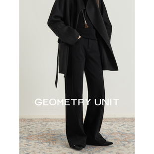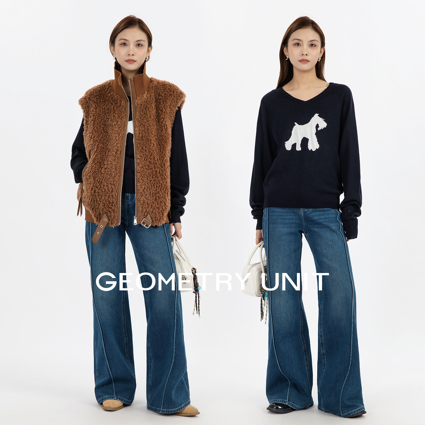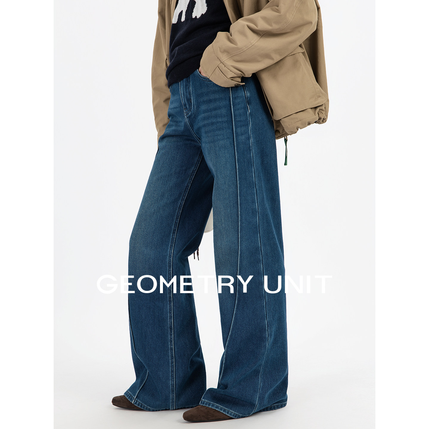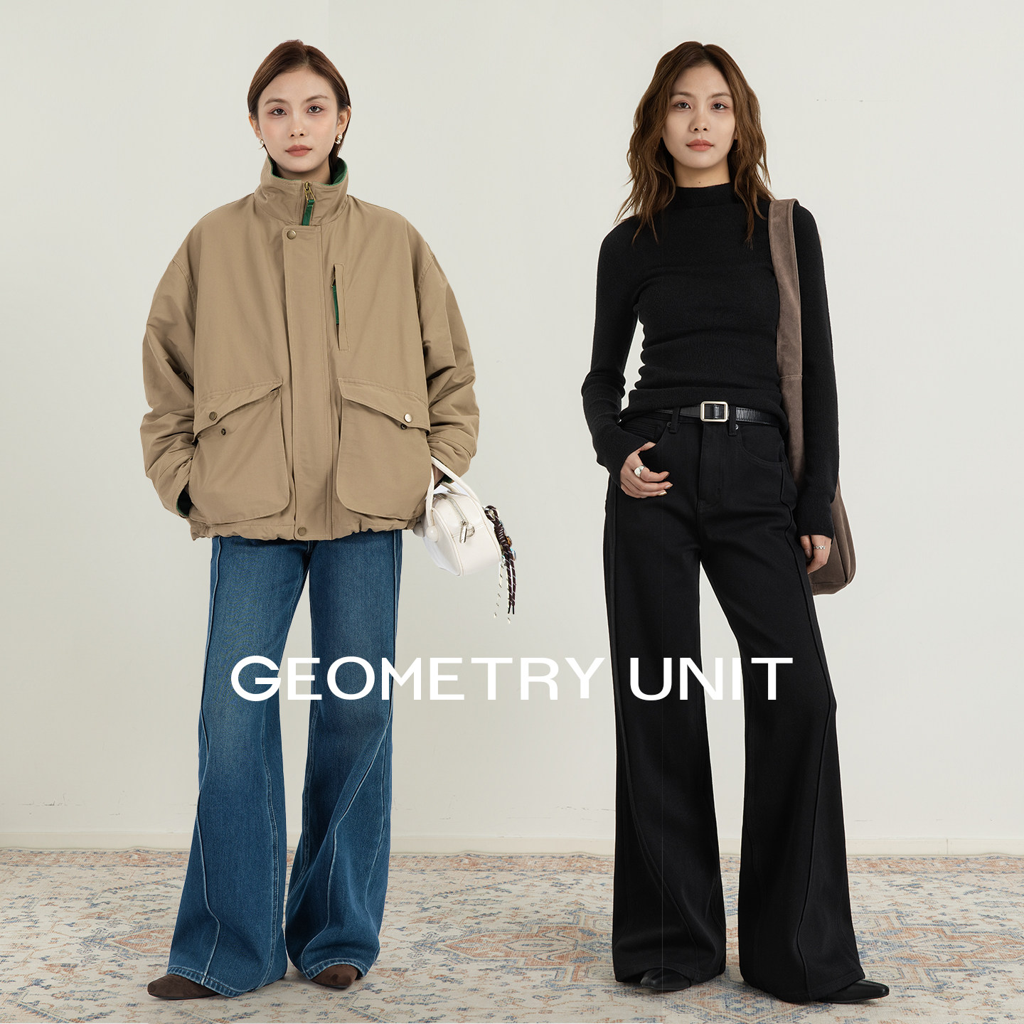 显瘦百搭立裁拼接牛仔裤 女新款 秋冬加绒四面弹高腰喇叭裤 几何单元