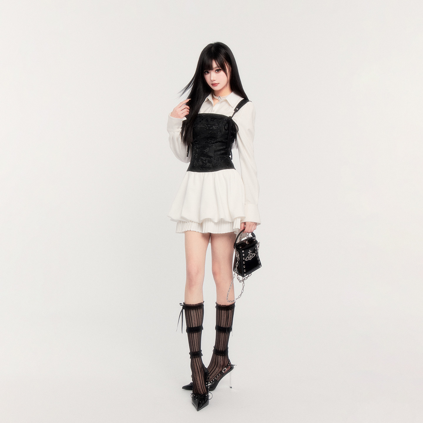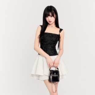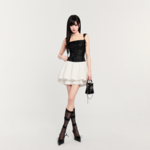 VOCK 情人节公主风收腰显瘦生日蓬蓬裙百褶吊带连衣裙子 月光序曲
