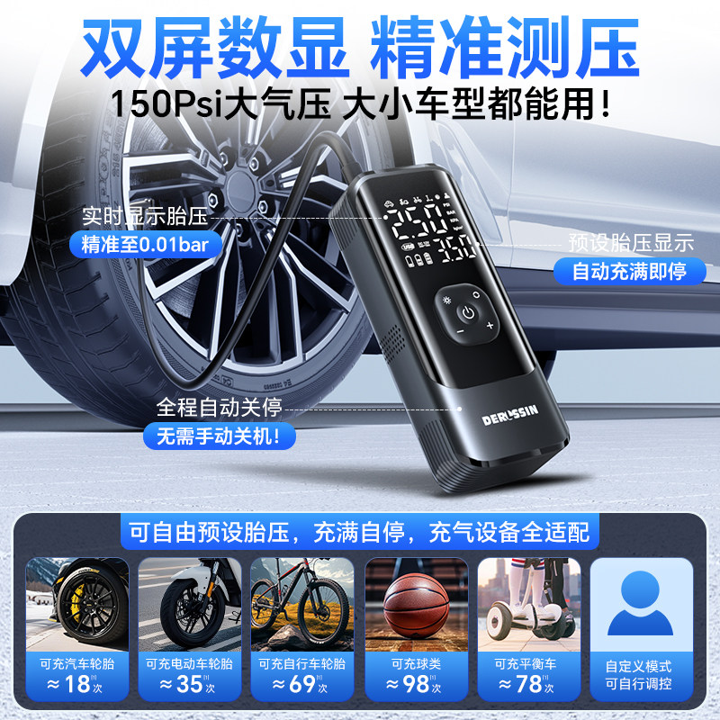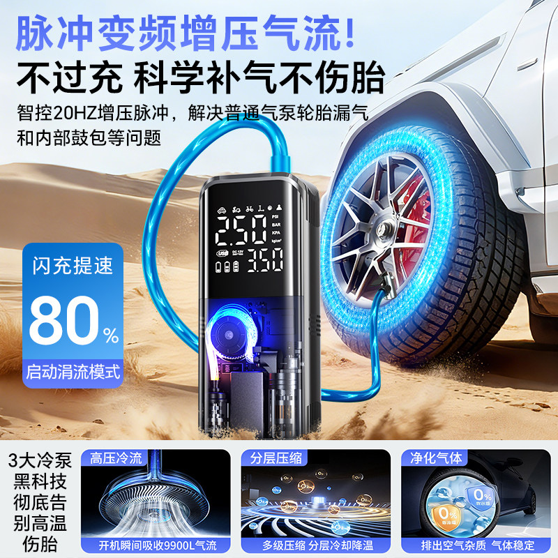 车载无线充气泵便携式 汽车用电动打气筒小轿车轮胎车用测压加气宝