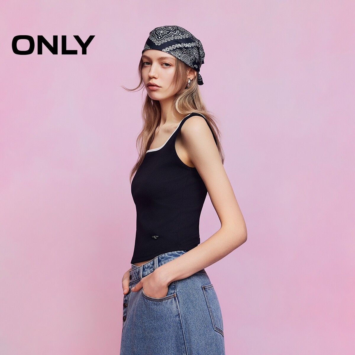 吊带背心T恤女 简约撞色方领显瘦短款 绫致ONLY2026春季 新款