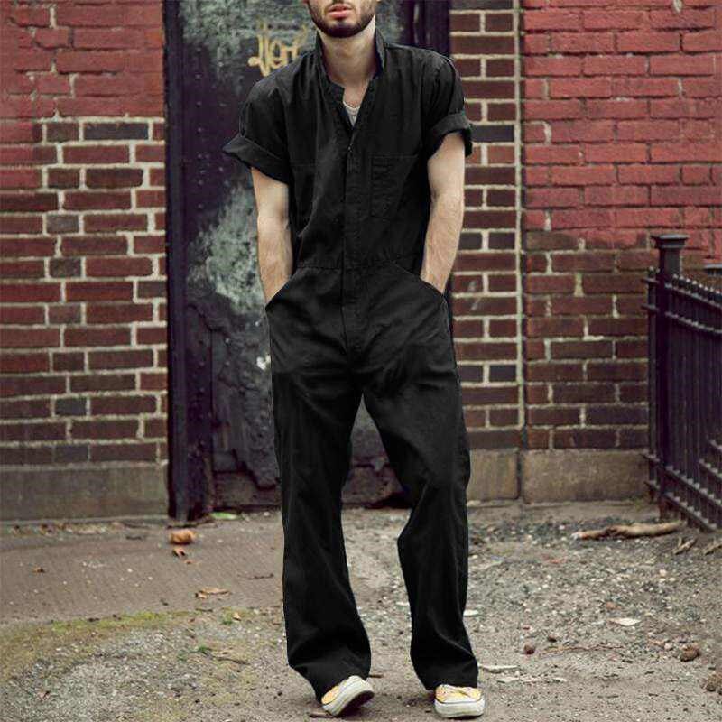work suit 连体裤 lapel 翻领休闲工装 casual 男士 Mens jumpsuit