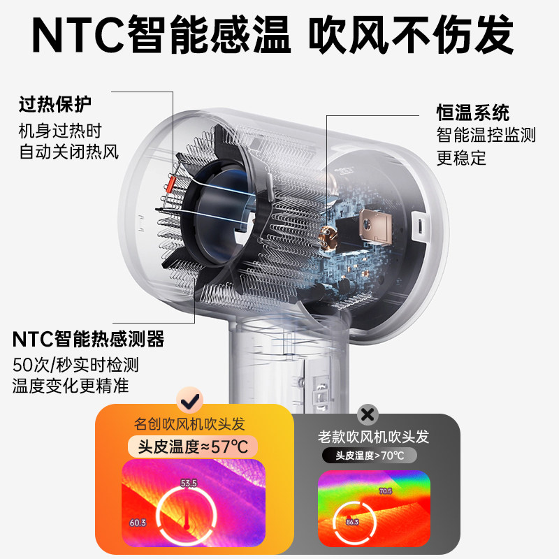 名创优品高速吹风机家用等负离子护发静音速干新款 强力电吹风筒