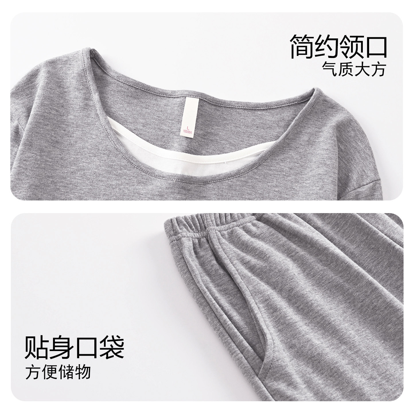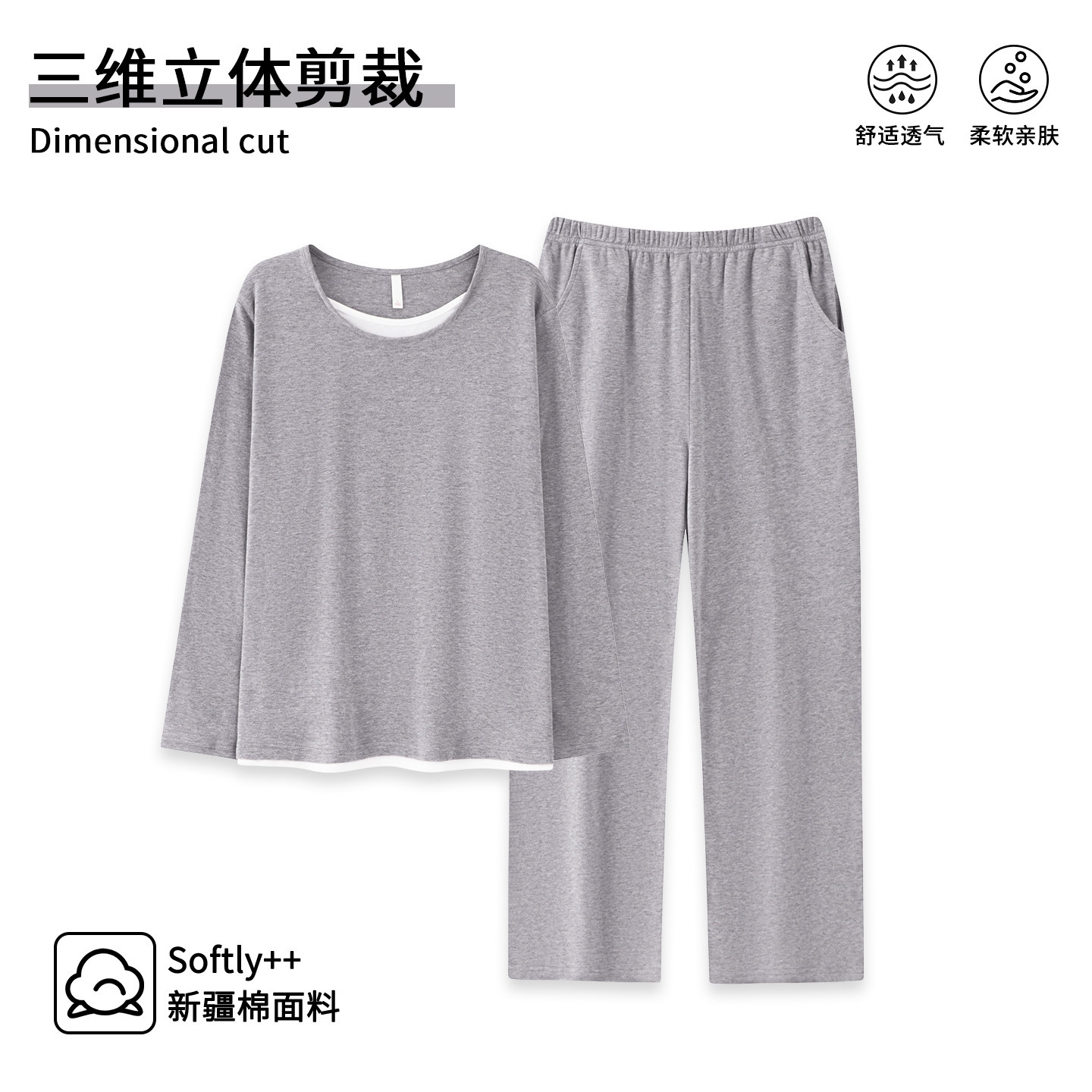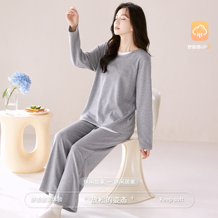 浅灰家居服春秋天 纯棉布料100全棉女士长袖 芬腾可安睡衣女款 冬季