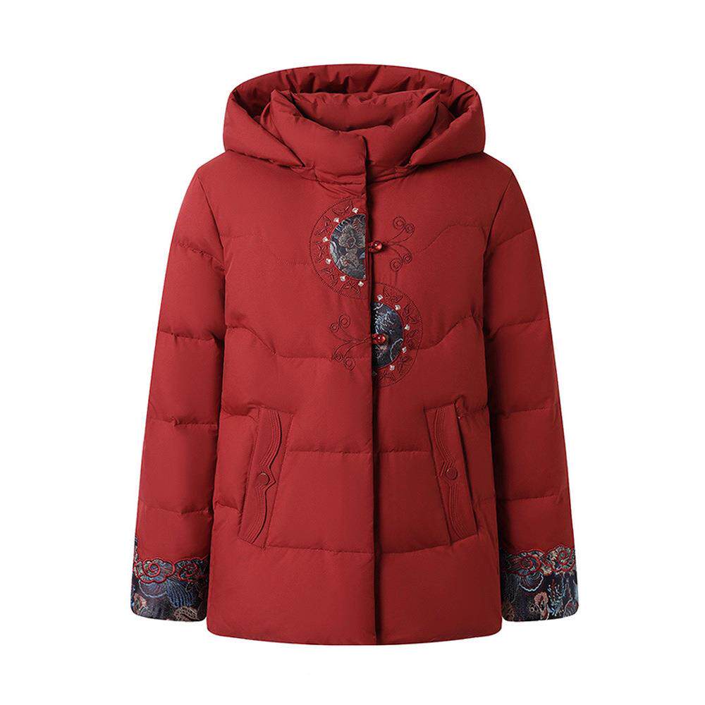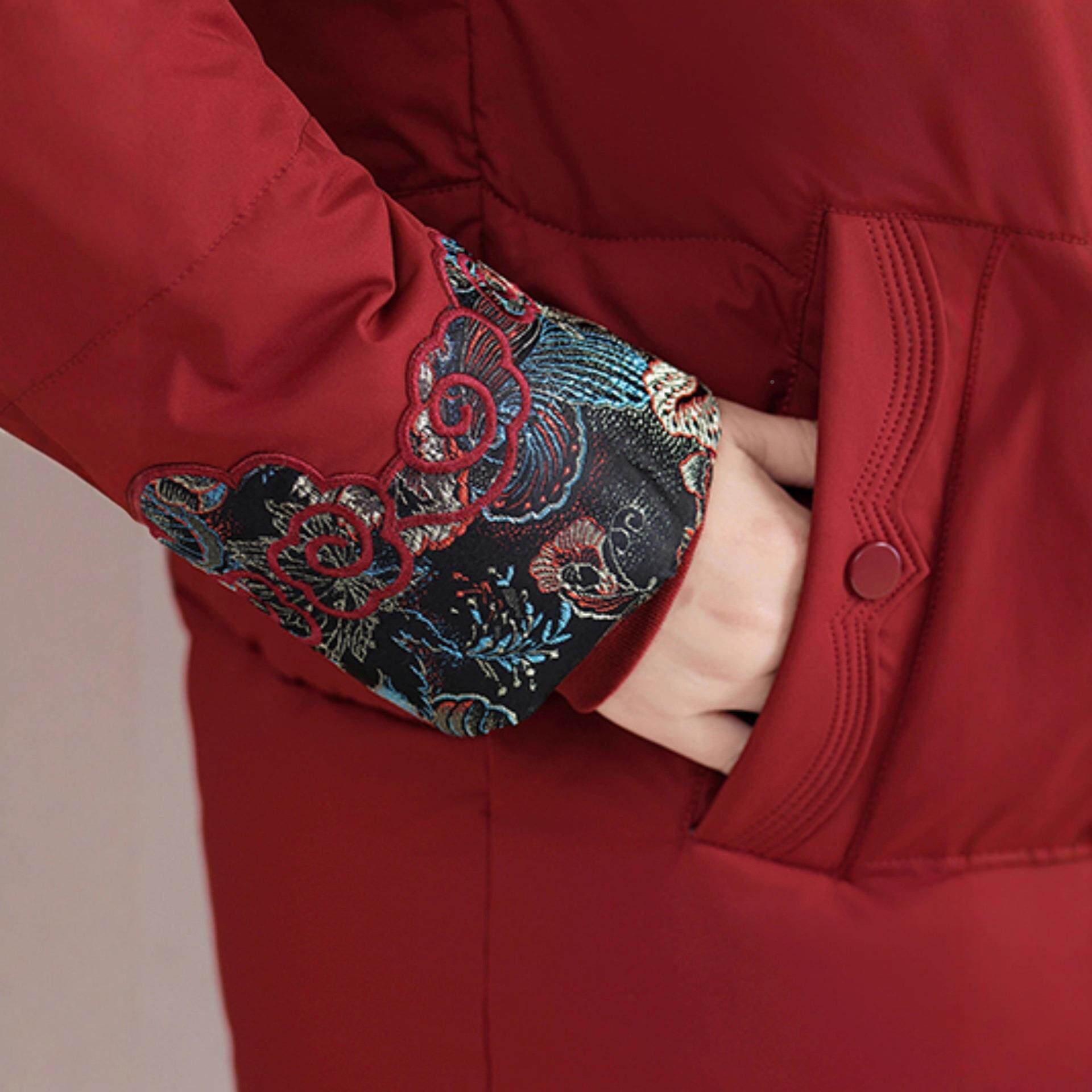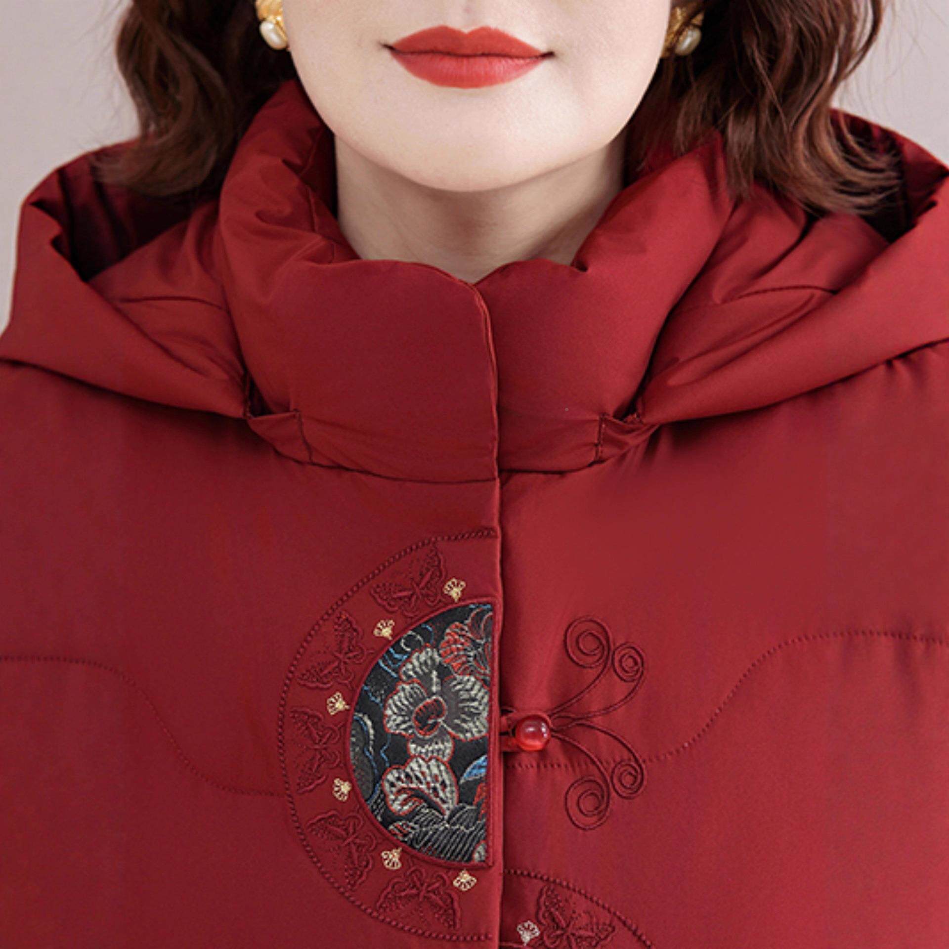 中老年女士喜婆婆国风红色 冬季 中绒正89—8867品鹅羽绒服短大码 款