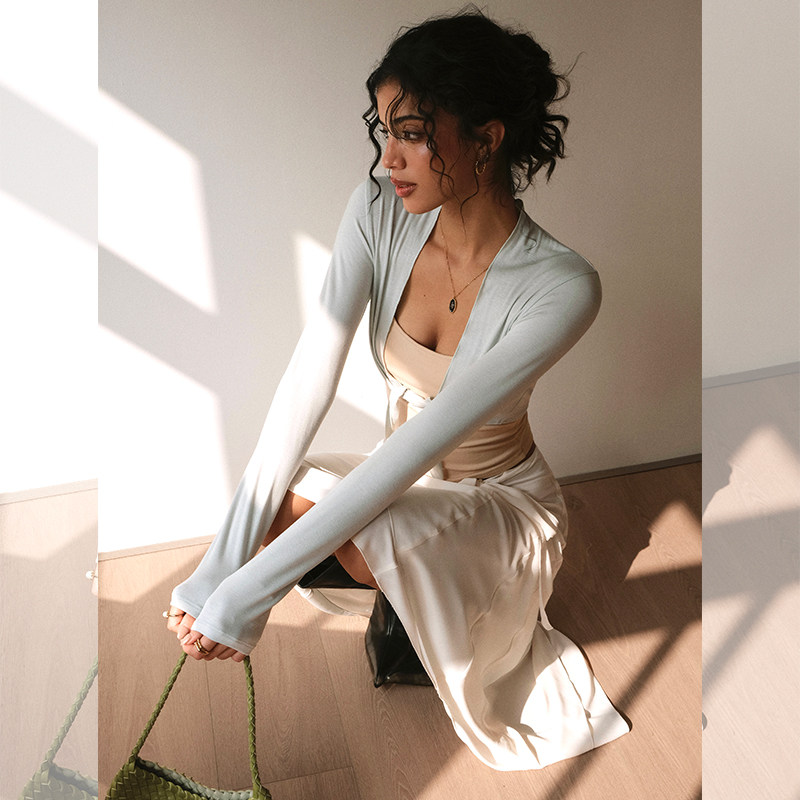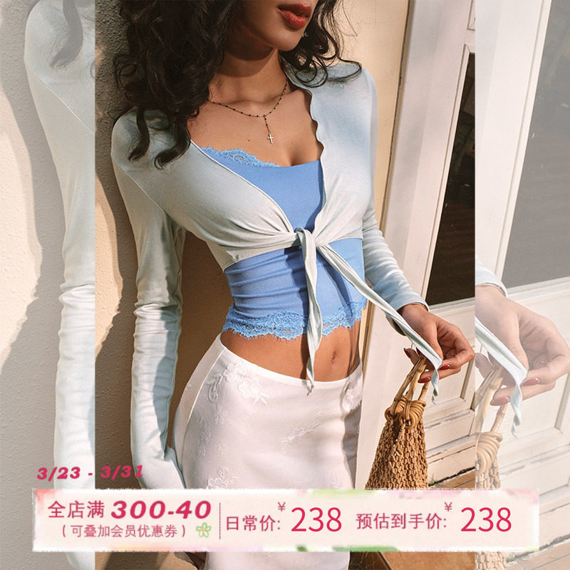 针织开衫 防晒衫 女春薄款 修身 显瘦短上衣 罩衫 ITSNIKAR裸色绑带长袖