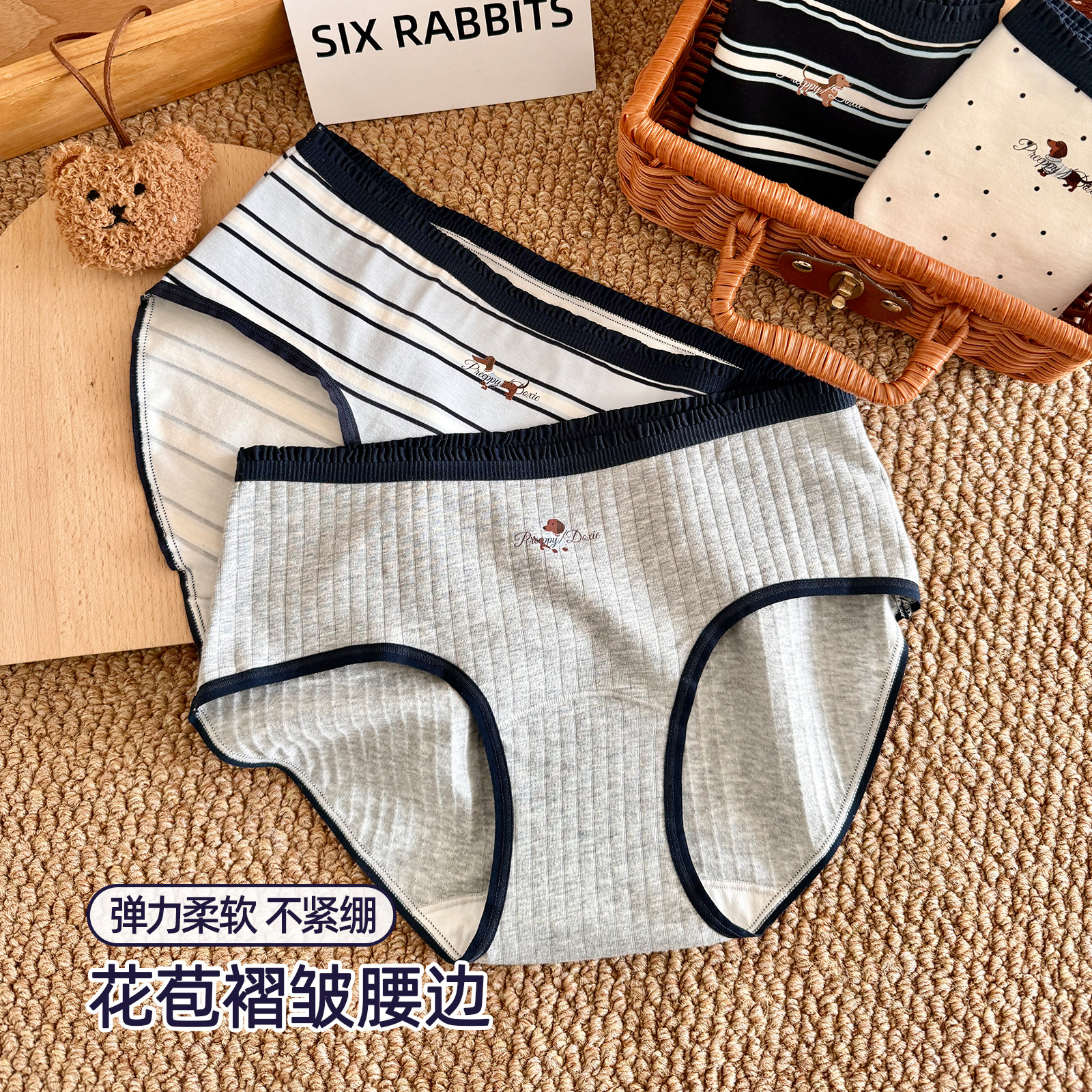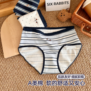 抑菌全棉底裆中腰不夹臀三角裤 女10A全裤 A类棉内裤 六只兔子3条装