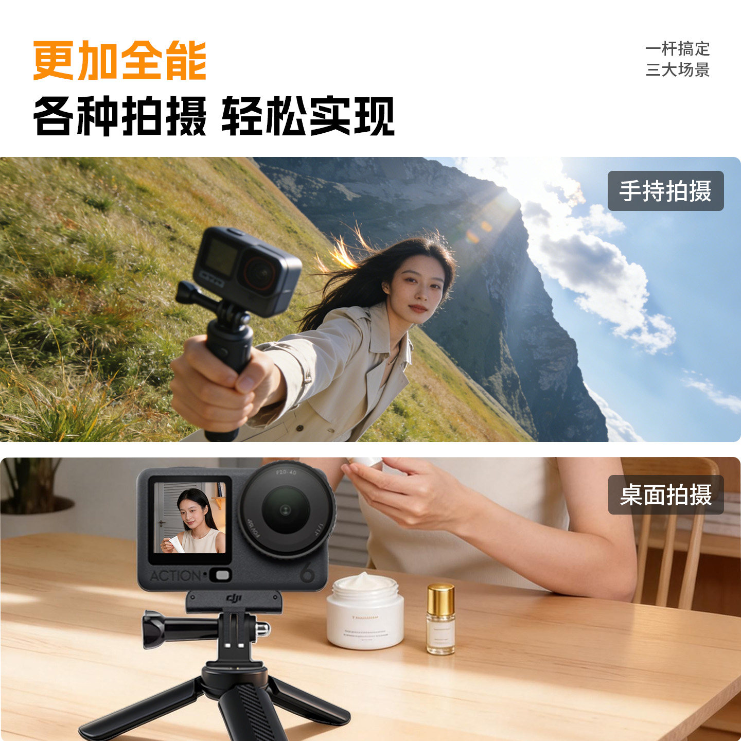 3迷你三脚架手持杆磁吸快拆运动相机支架 适用大疆Action6 5Pro