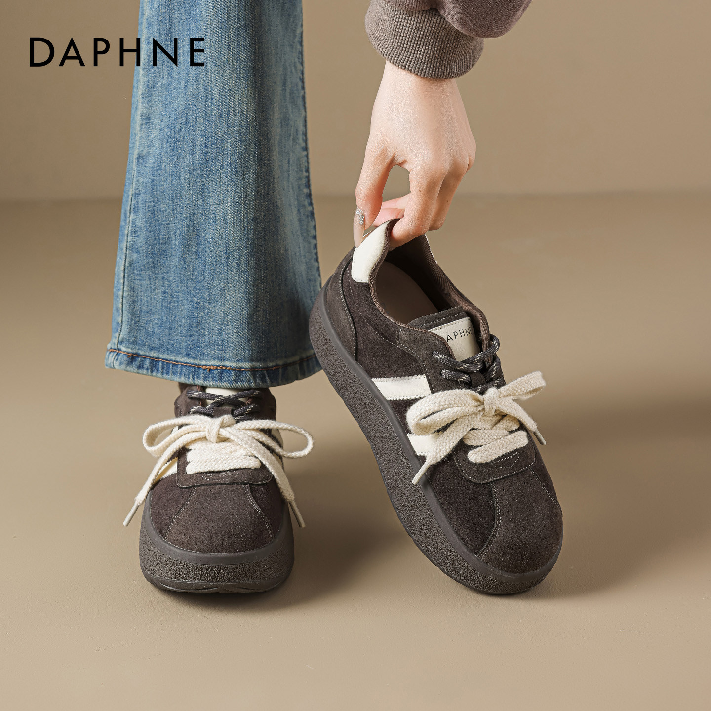 松糕板鞋 达芙妮厚底德训鞋 灰色增高阿运动甘休闲鞋 春季 女2026新款