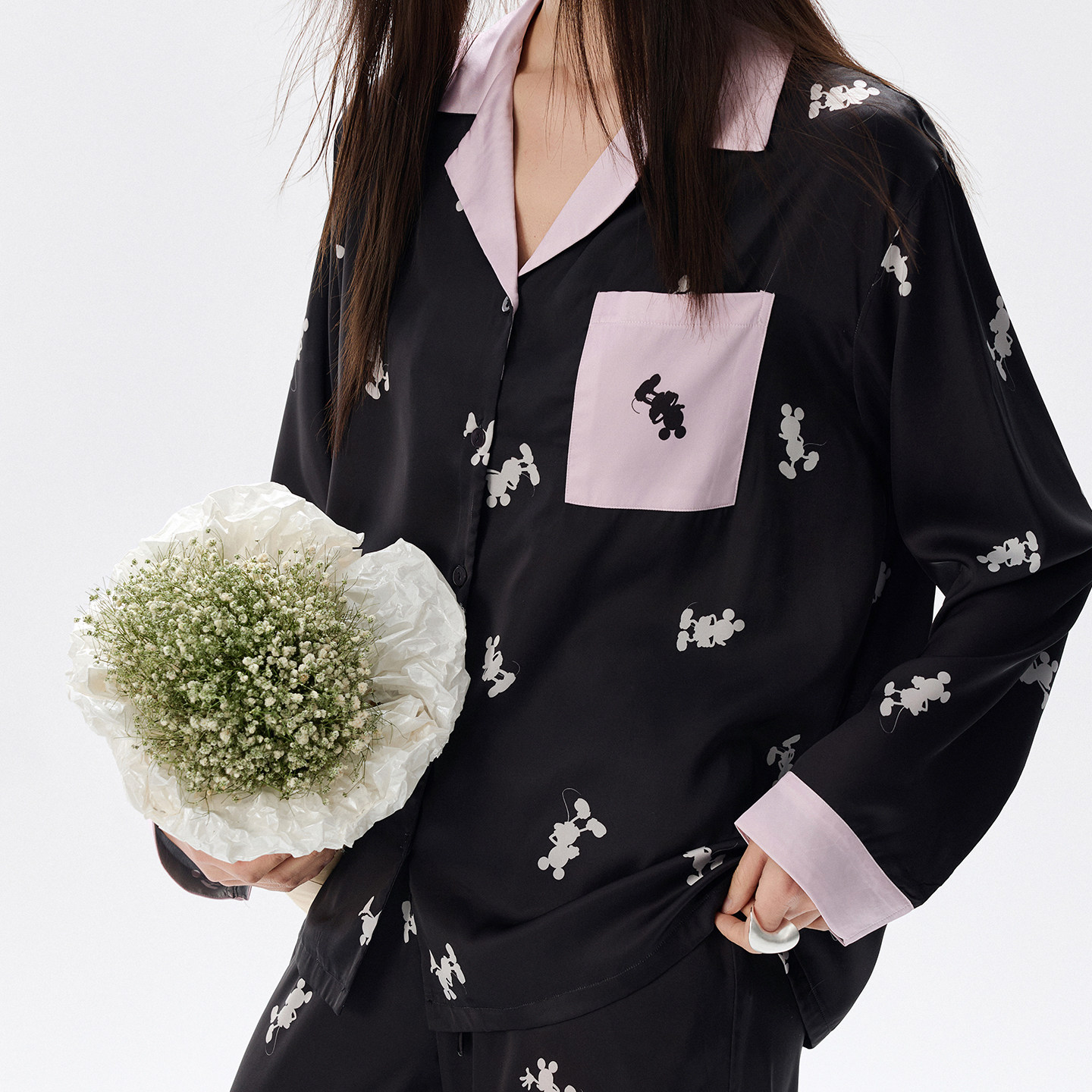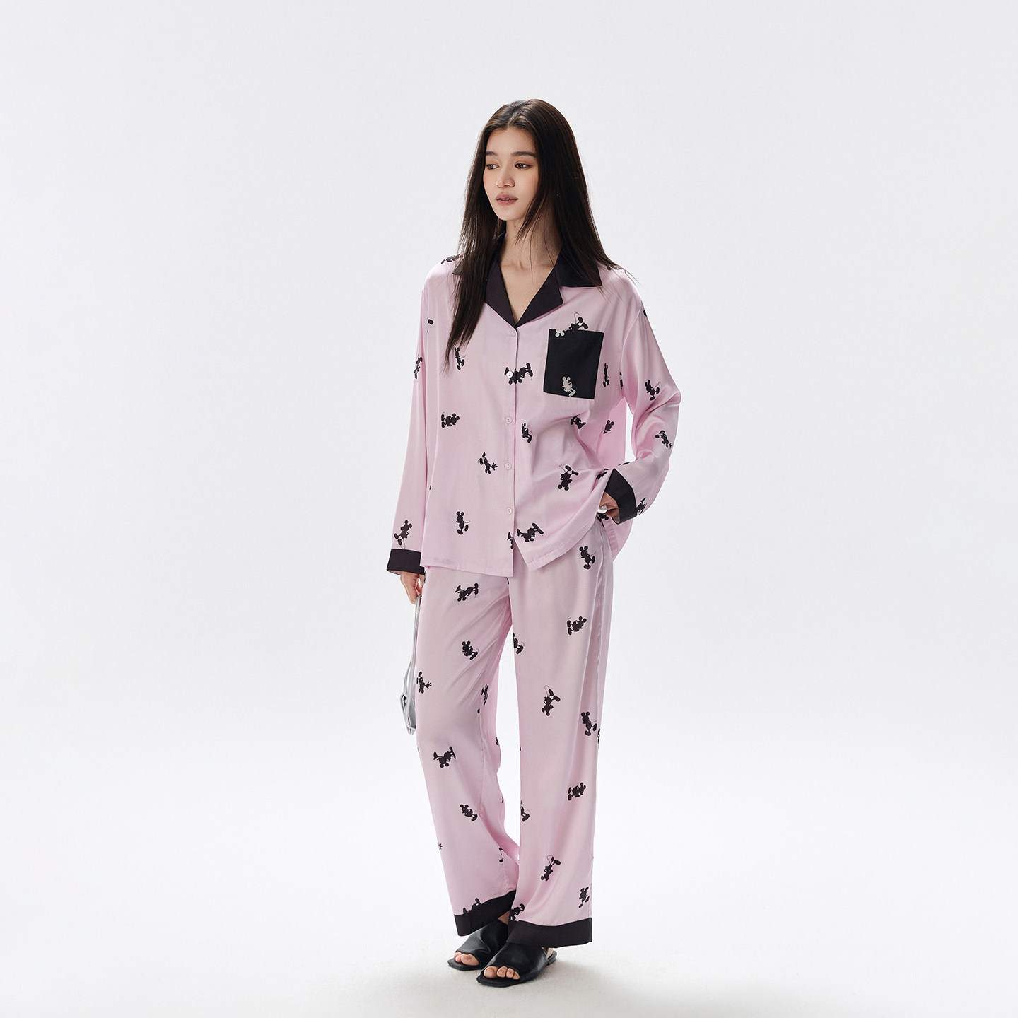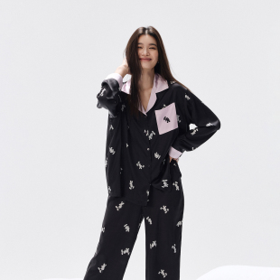 睡衣家居服套装 迪士尼可外穿冰丝拼接开衫 衬衫 长裤 女春夏 休闲长袖