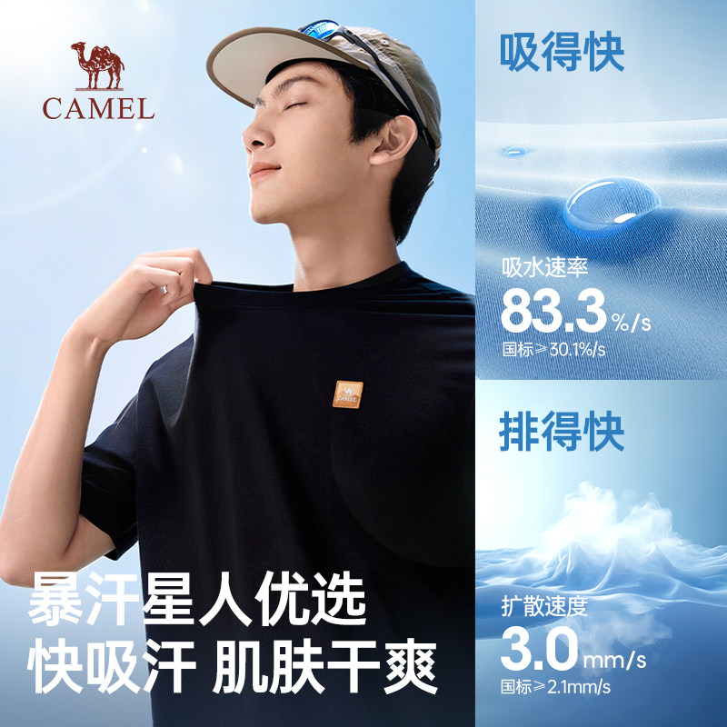抗菌印花圆领半袖 骆驼男装 2026新款 t恤男夏季 体恤 冰感速干短袖