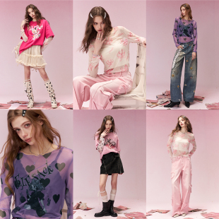 叠穿皮肤衣内搭上衣 t恤女2026年早春新款 妖精 口袋满印网纱长袖
