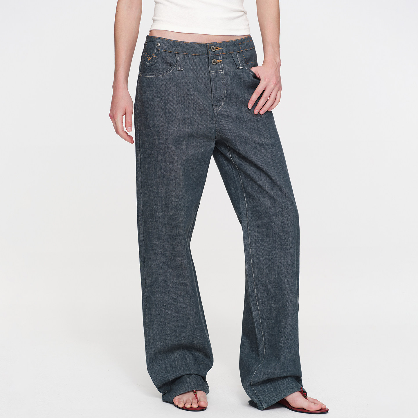 休闲裤 SMIIILE复古水洗做旧纯棉阔腿牛仔裤 低腰宽松显瘦春直筒裤