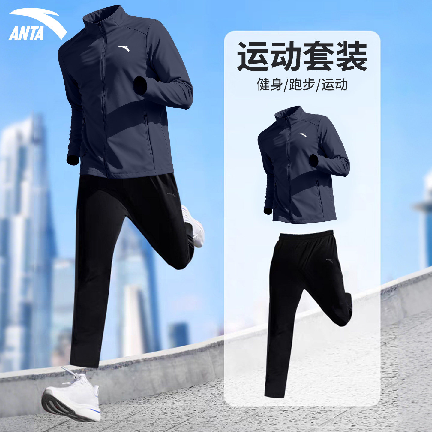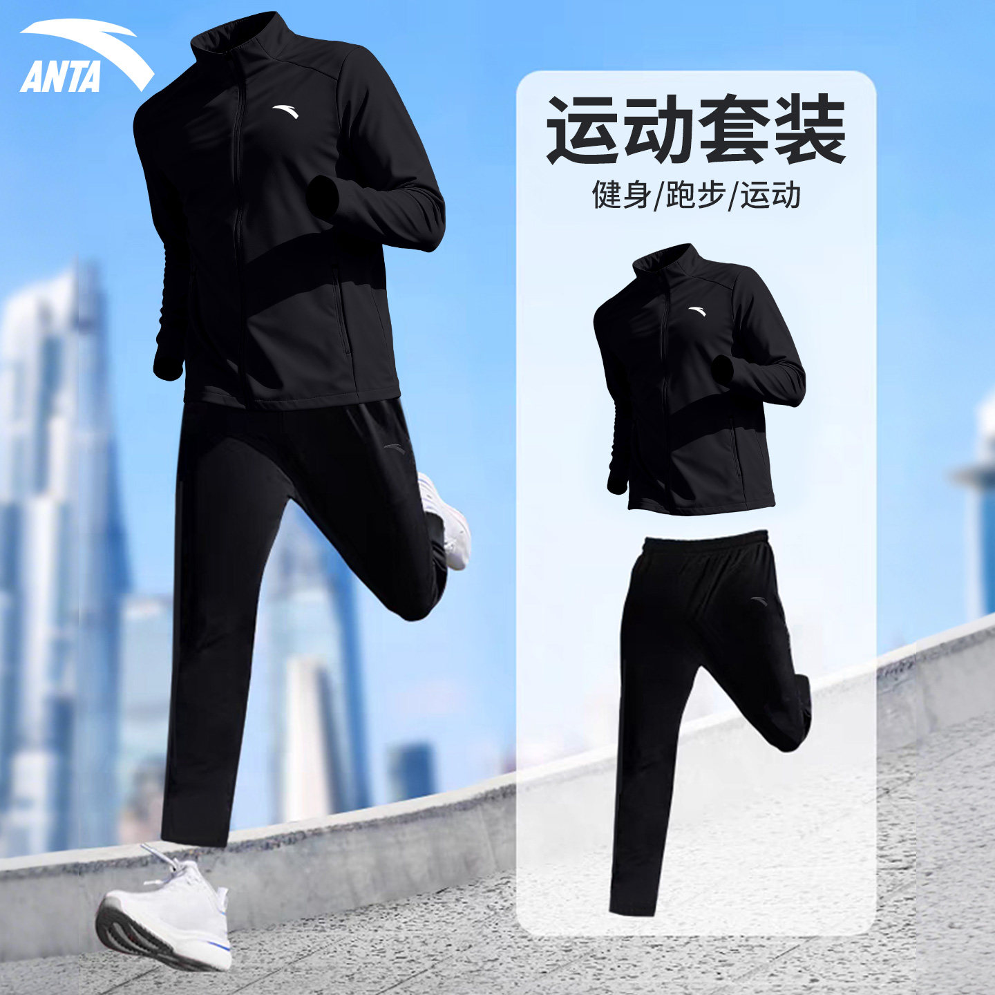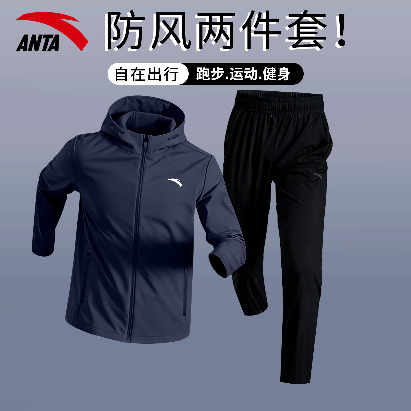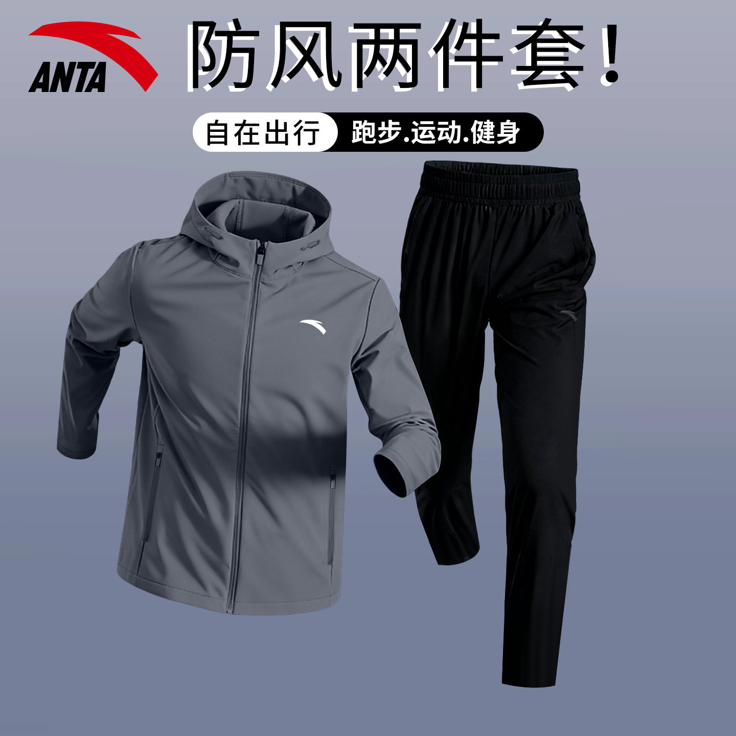 宽松外套长裤 安踏运动套装 新款 2026春季 防风健身跑步服两件套 男款