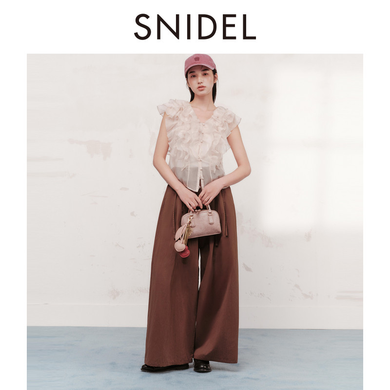 阔腿裤 高腰荷叶边直筒休闲裤 SWFP261233 时尚 SNIDEL2026春夏新品
