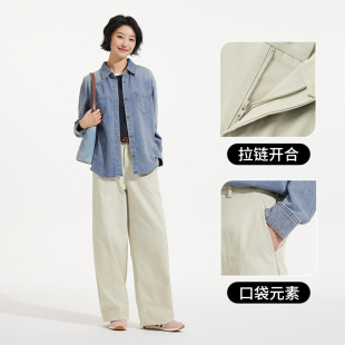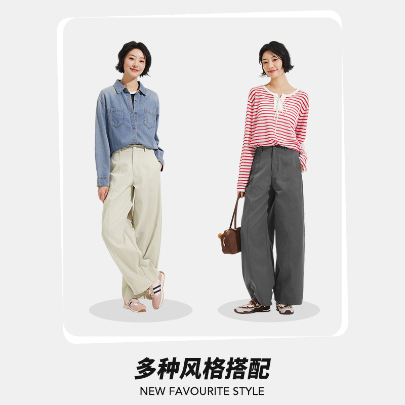 直筒阔腿裤 弯刀宽松长裤 2026年春季 日系时尚 新款 热风女士休闲长裤