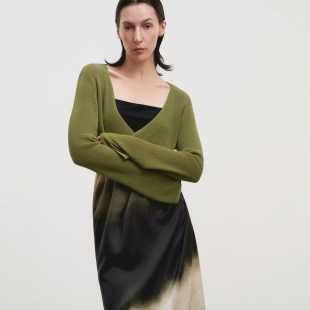 莱赛尔针织开衫 显瘦长袖 V领交叉式 BLUE轻奢优雅女装