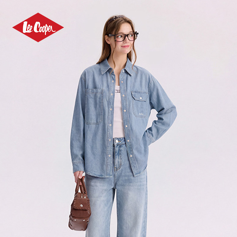 女装 Lee 衬衫 牛仔翻领长袖 休闲通勤舒适柔软宽松上衣 Cooper春季