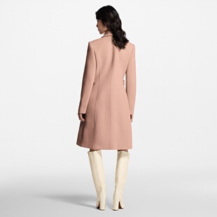 自营欧洲直邮LV路易威登 女士米色羊毛老花图案大衣外套