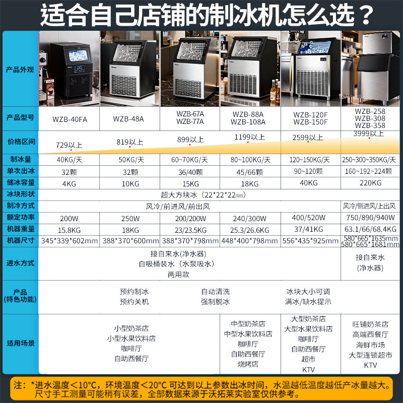 沃拓莱制冰机商用奶茶店大型70 300公斤小型全自动方冰块机器 150