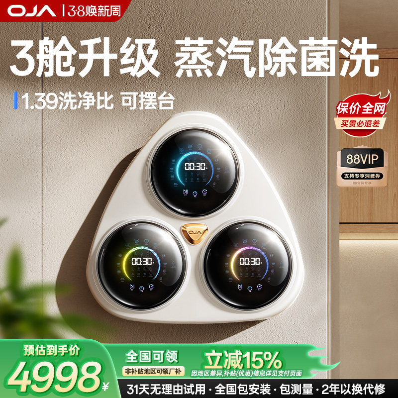 OJA三桶内衣裤 洗衣机壁挂洗脱烘一体筒全自动清洗袜子小型迷你仓