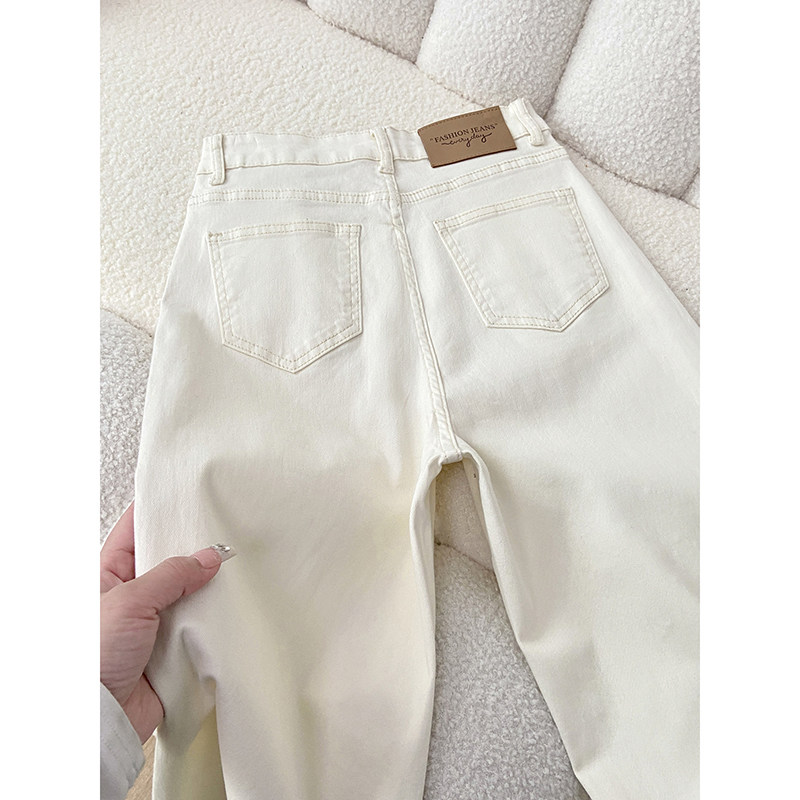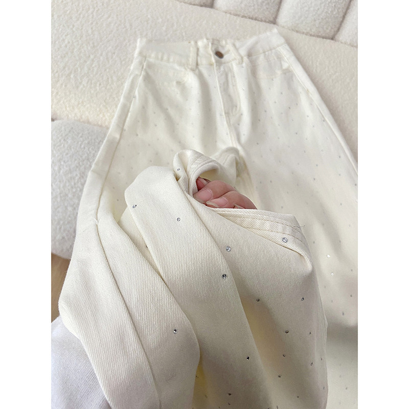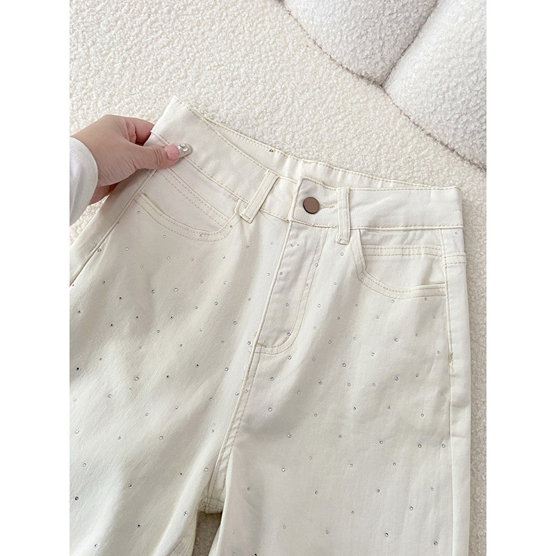 宽松慵懒风喇叭裤 春季 女2026年新款 白色满天星烫钻高腰微喇牛仔裤