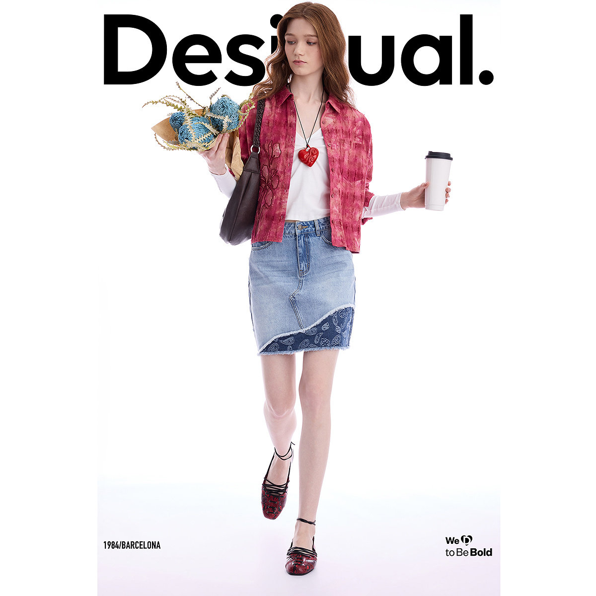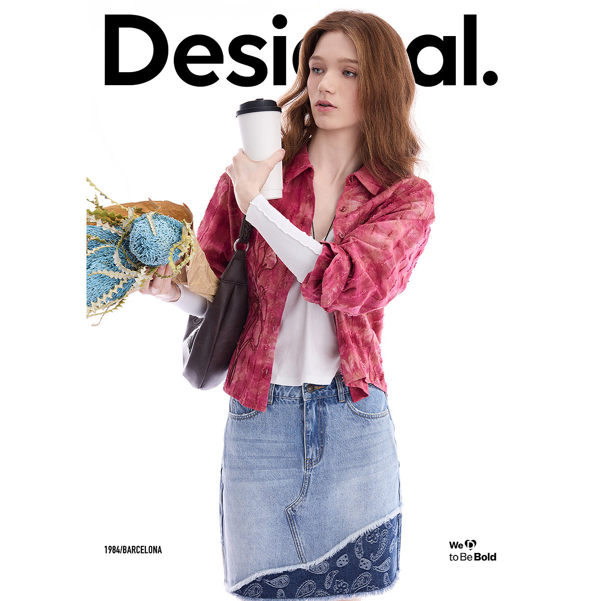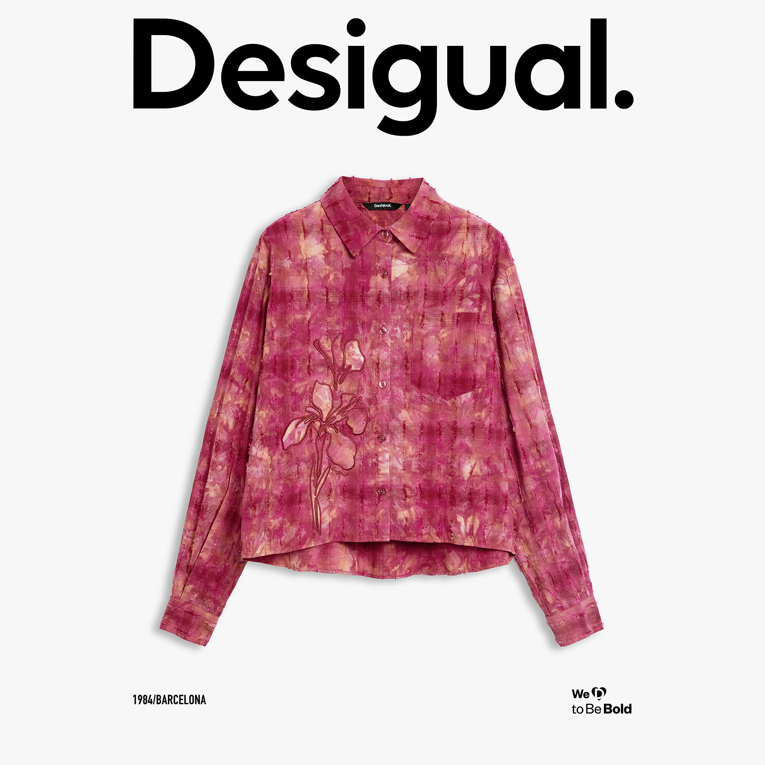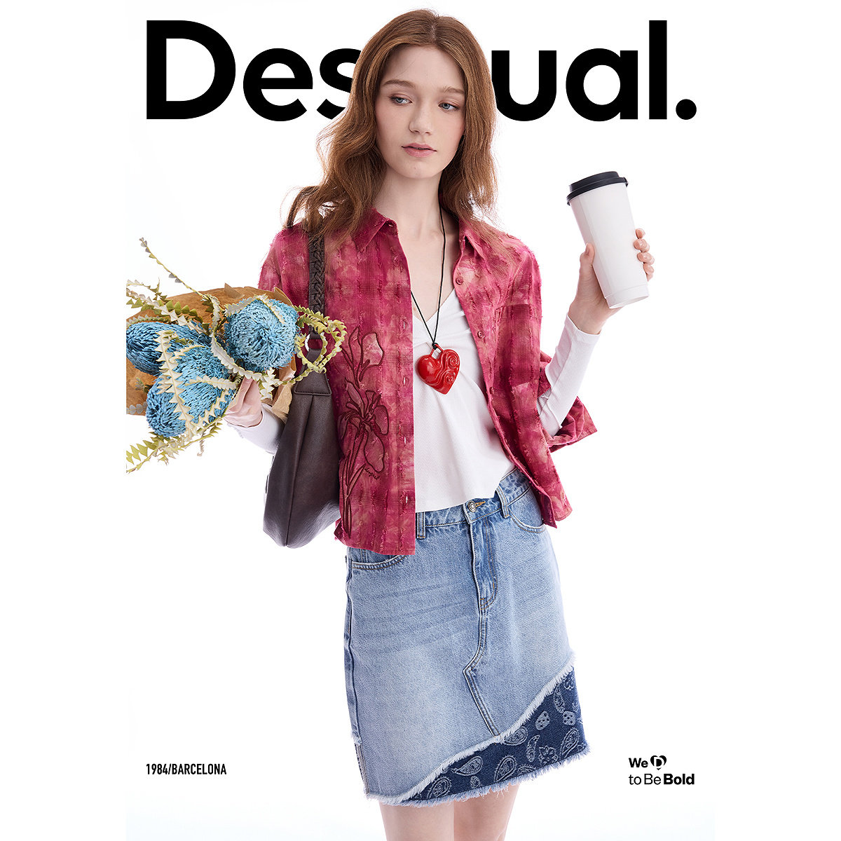 衬衫 Desigual26春夏新品 玫红做旧格纹贴布绣女式