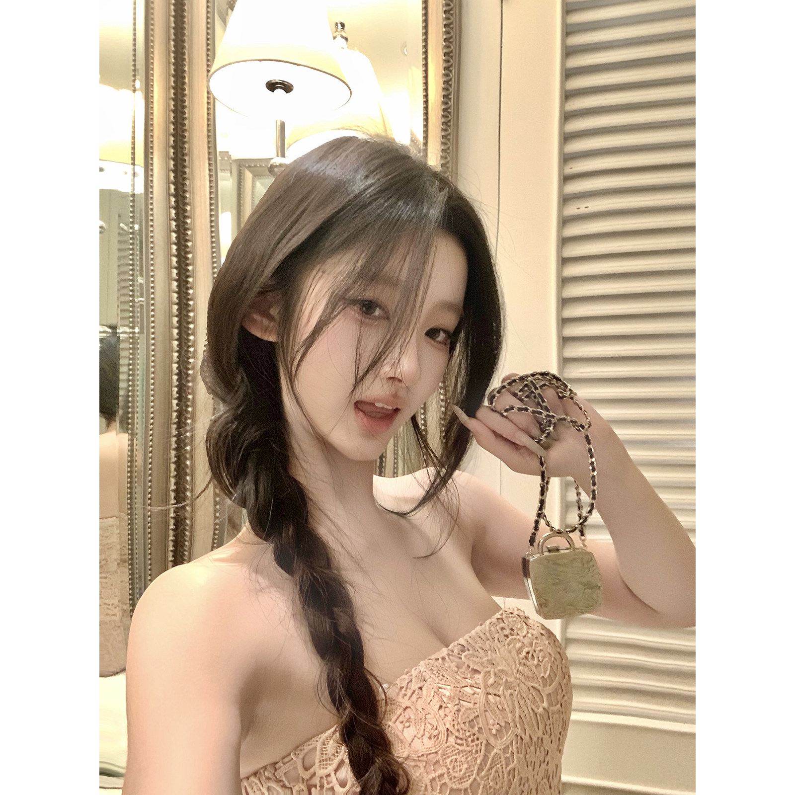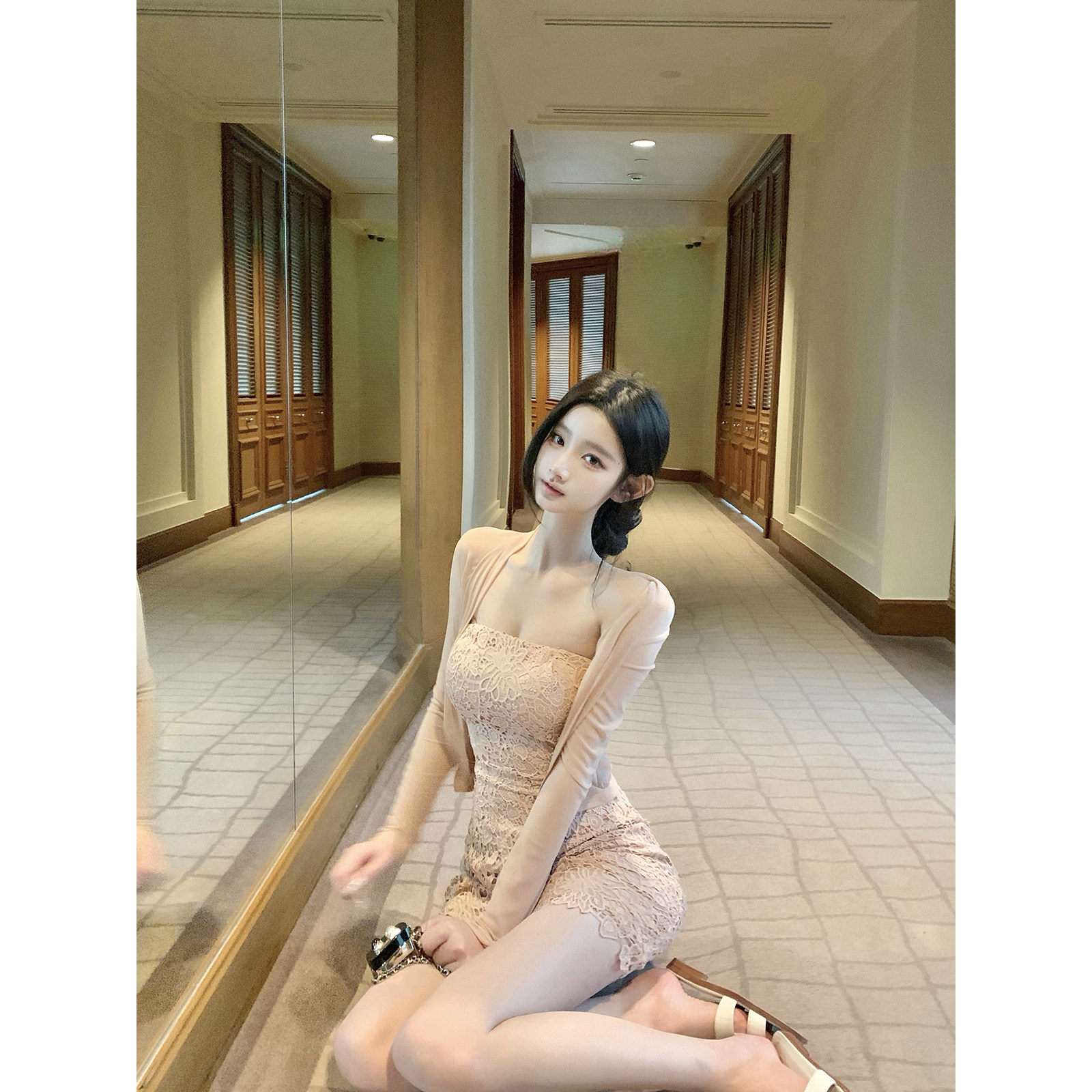 粉色蕾丝抹胸裙修身 雾色漫游 显瘦包臀连衣裙 热狗很辣 Hotdog