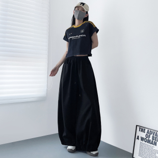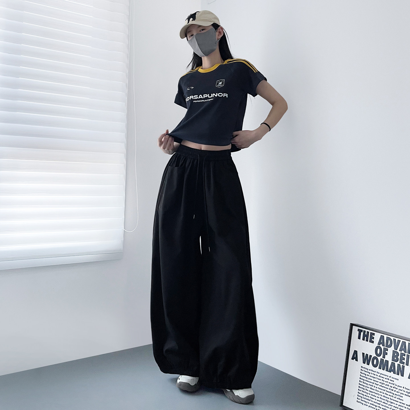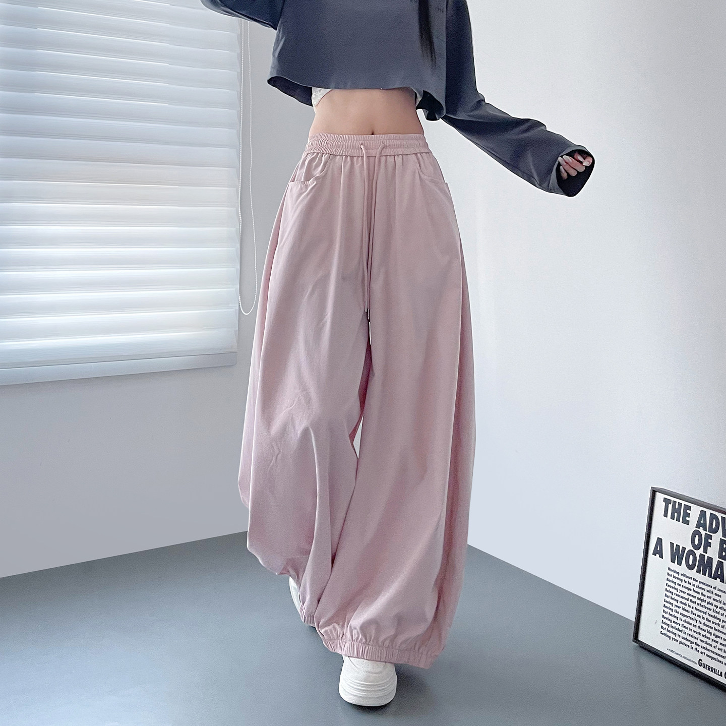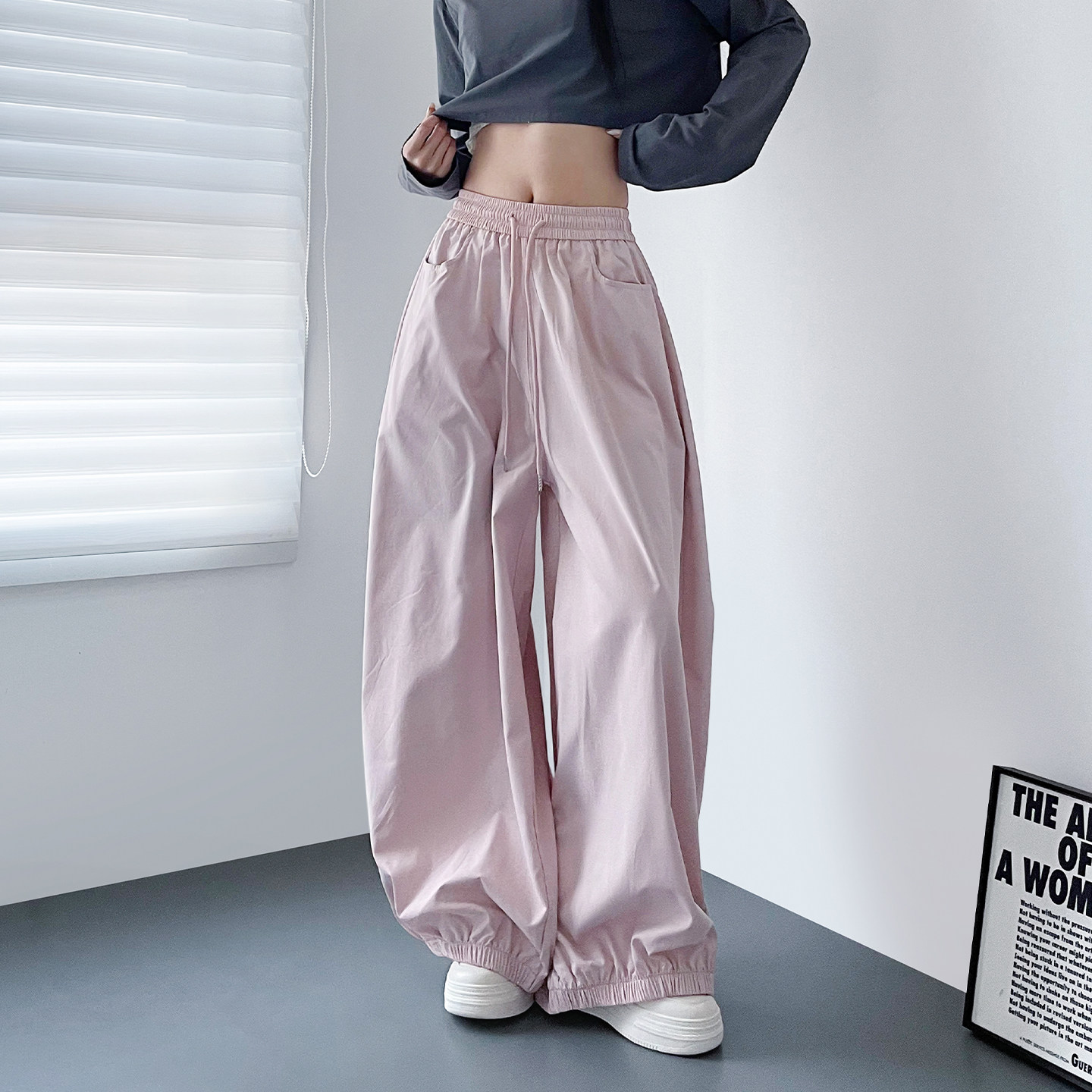 胖mm显瘦慵懒风藏肉运动裤 粉色高腰直筒垂感阔腿裤 大码 新款 女春季